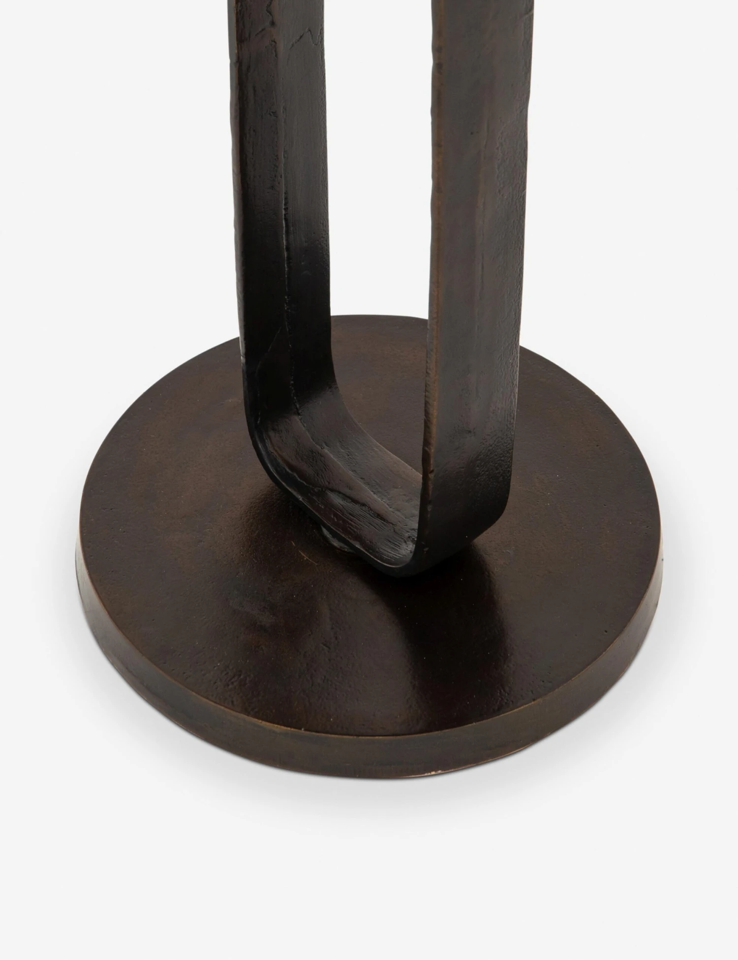 Polish your look, indoors or out, with the Alethtia side table. Its open, geometric silhouette features a slender ring, connecting a round base and tabletop that almost seems to float in place with precision and poise. Textural aluminum clad in a lacquer finish offers raw industrial appeal to this neatly design—offering an elevating end table from patio to lounge.