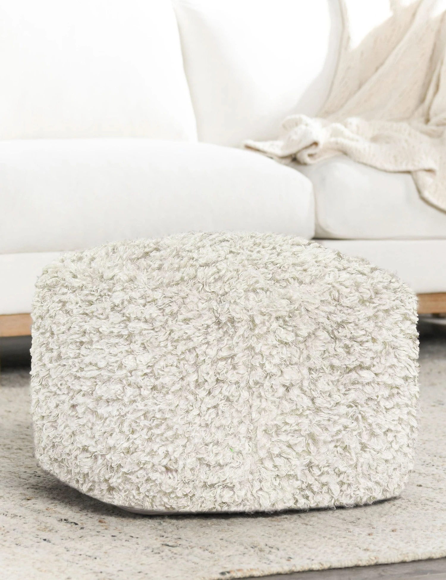 Cozy never felt so chic. The Aloma pouf brings a fresh touch of style to any space with its square shape and shearling-like cover. The minimalist design provides a versatile accent that can float throughout the room for an extra surface or place to prop your legs.
