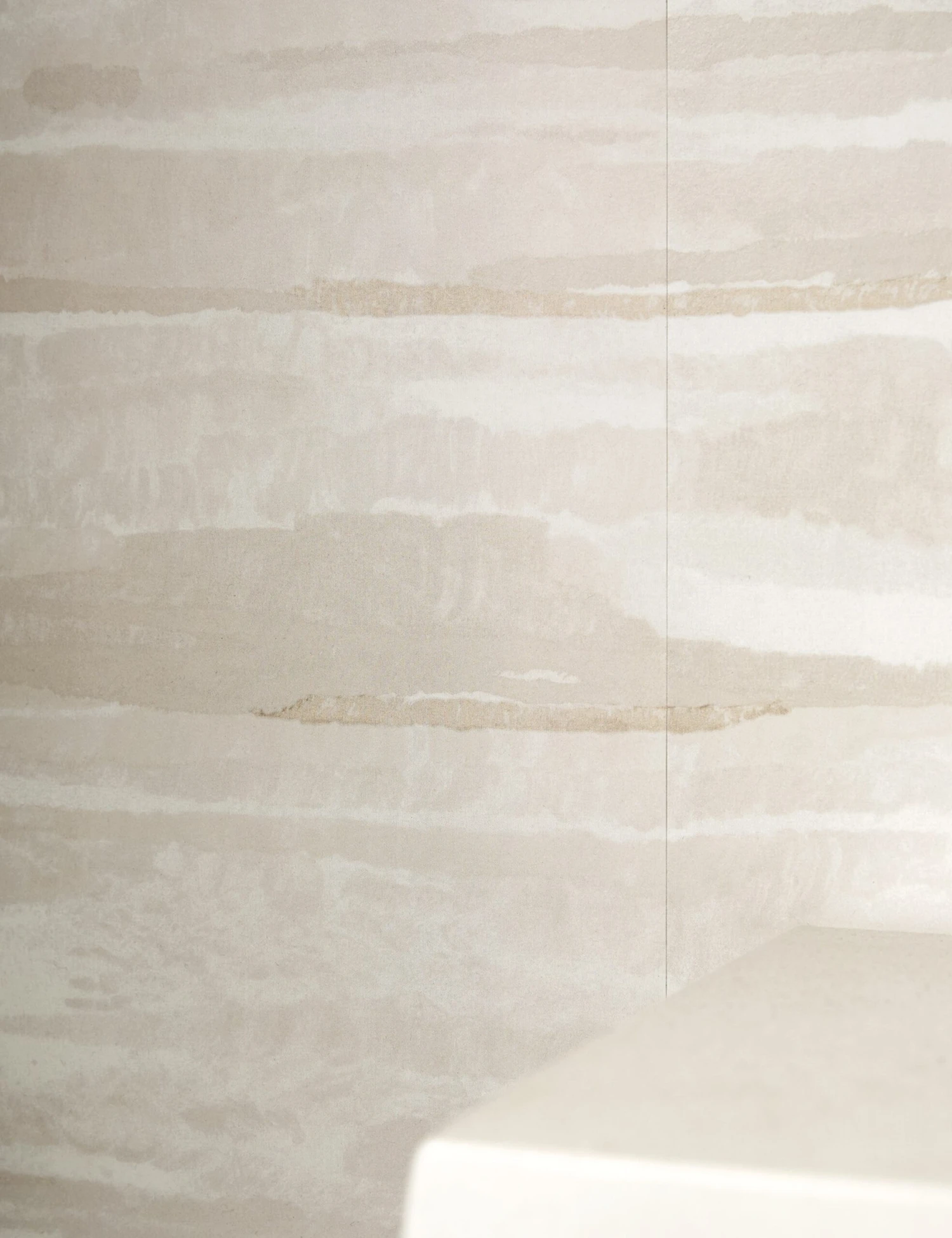 Ground the room with our Alucia wallpaper. The abstract design features soft striations in mineral tones that enrich your palette with versatile appeal. This vinyl wallpaper offers elevated style with a practical touch for any space—from layering texture into a high-traffic area or kitchen to inspiring a home spa feel in your en suite or bath.