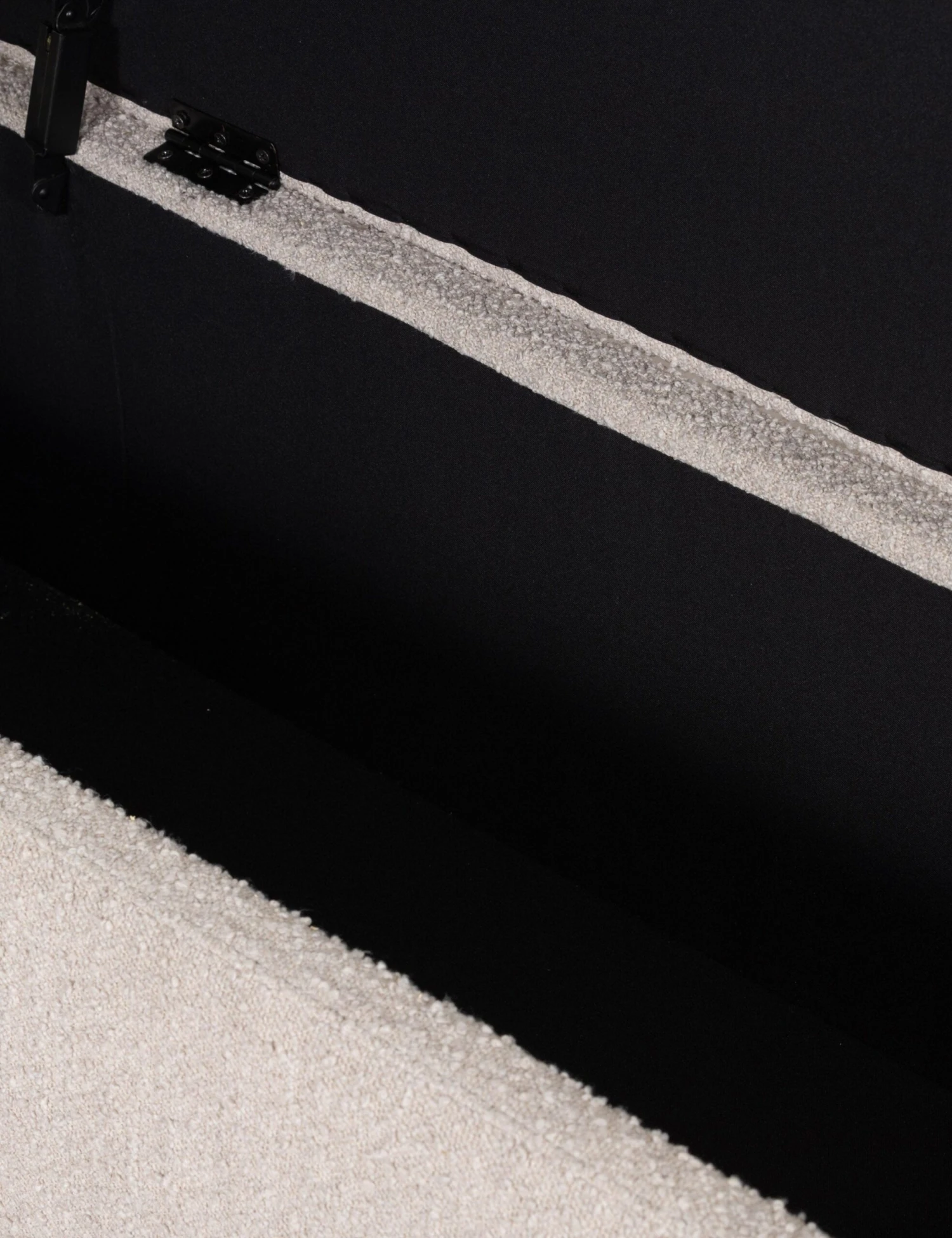 The Amalia trunk offers a versatile accent for spare seating or an extra surface with ample storage inside. With its performance boucle upholstery, this piece is designed for everyday elegance, no matter the space. The plush frame sits on bun legs offering a cozy touch with practical appeal perfect for an entryway, family room, or at the foot of your bed.