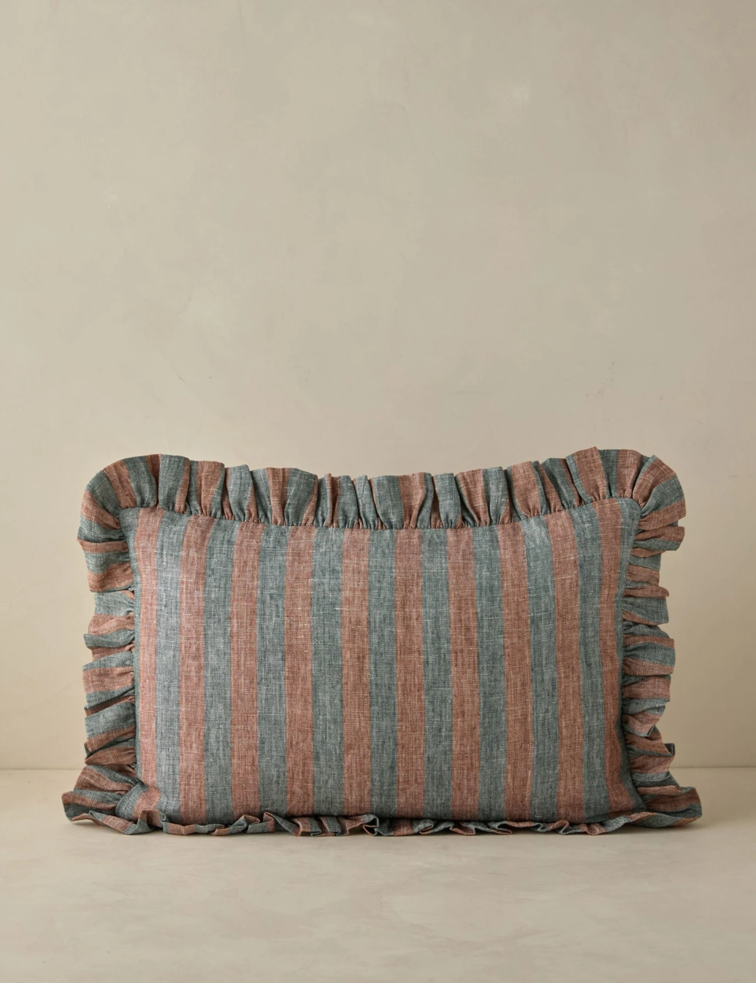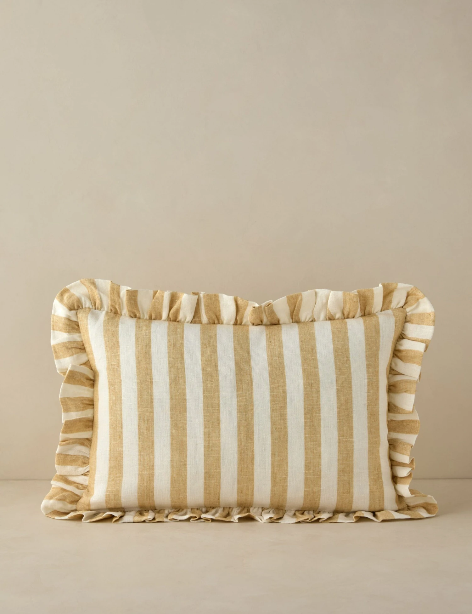Add some volume and vintage flair to your throw pillow collection. Our Lita pillow features a subtle striped design with a ruffled flange for fresh pattern and texture in your curation. The linen offers a cool, crisp touch, perfect for everyday spaces.