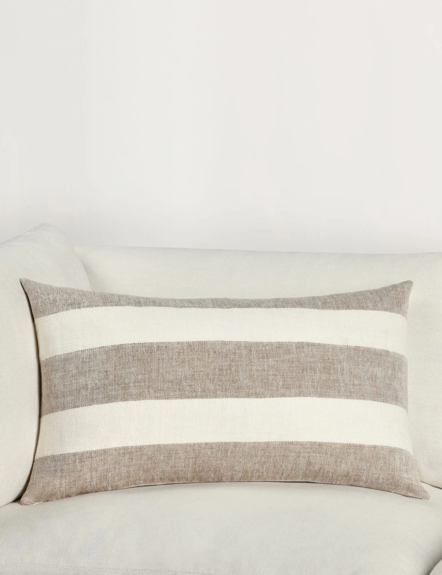 The Anatole pillow adds a bold touch of pattern with a light, breezy feel. This versatile accent pillow’s large-scale stripes offer visual impact tempered by a neutral palette that can fold into any curation, from rustic coastal havens to a Parisian pied-à-terre.