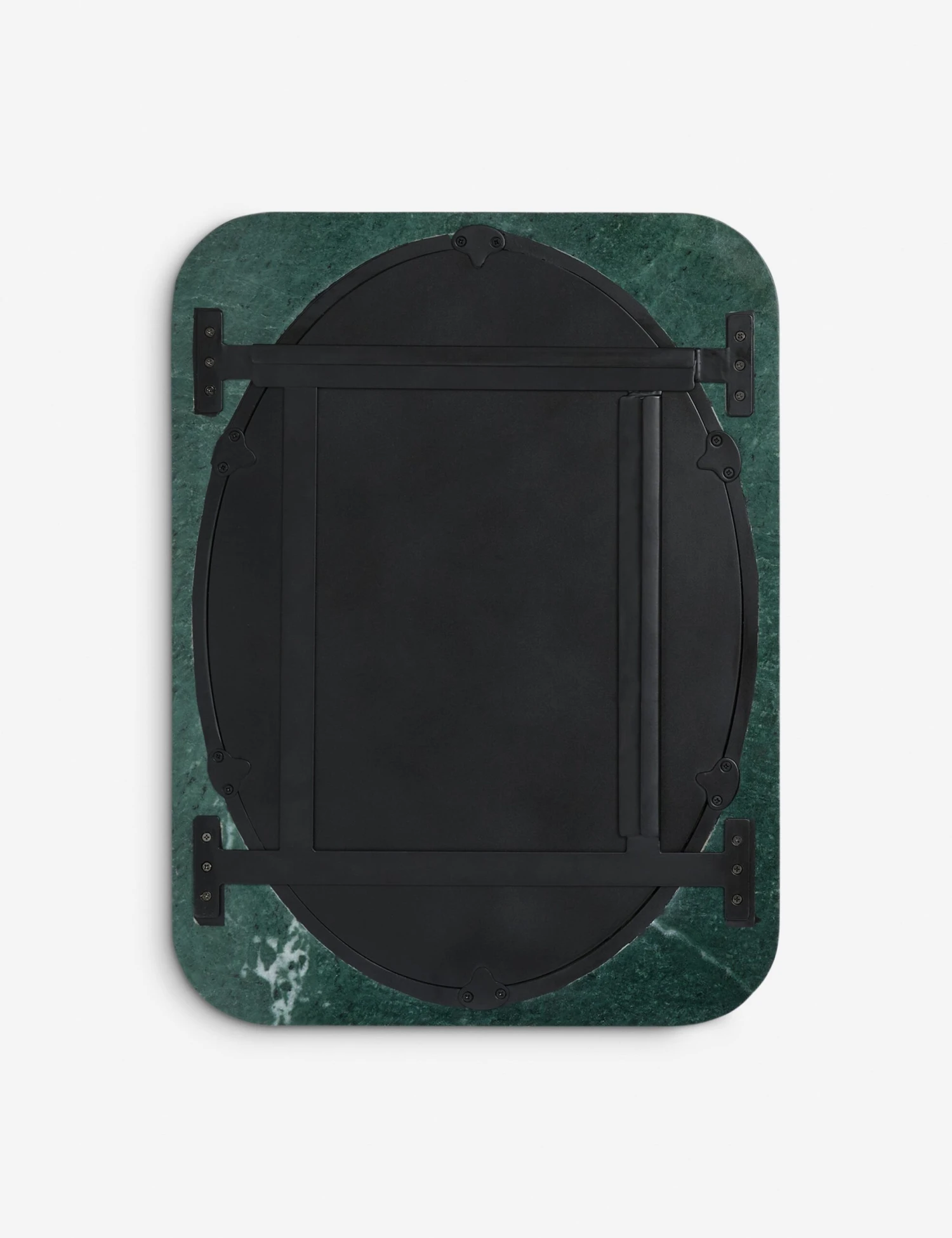 Our Arista mirror blends modern shape with luxe materiality. Framed in green marble, its oval inset offers depth and dimension with a polished edge. Timeless and bold, this wall mirror brings an eye-catching statement to any curation.