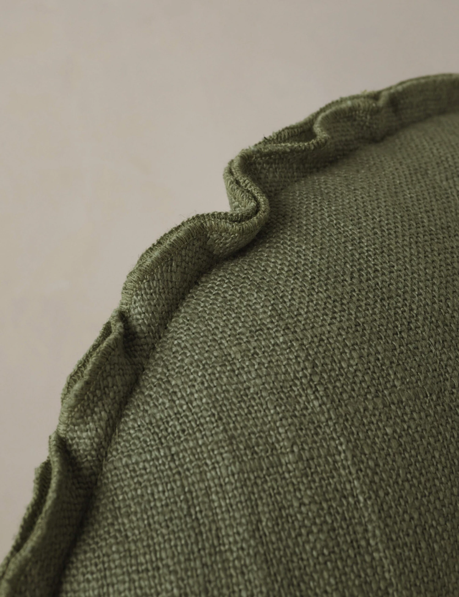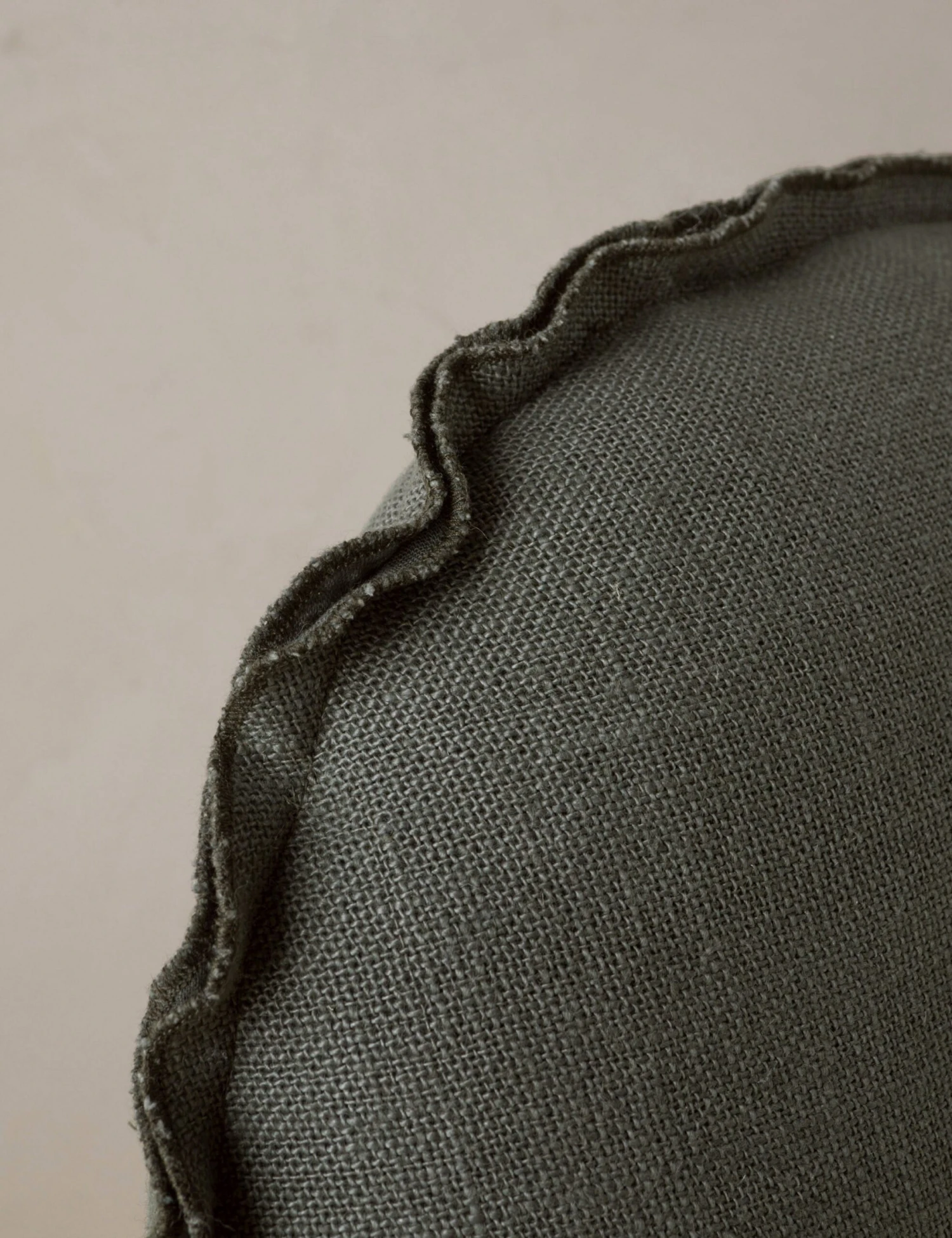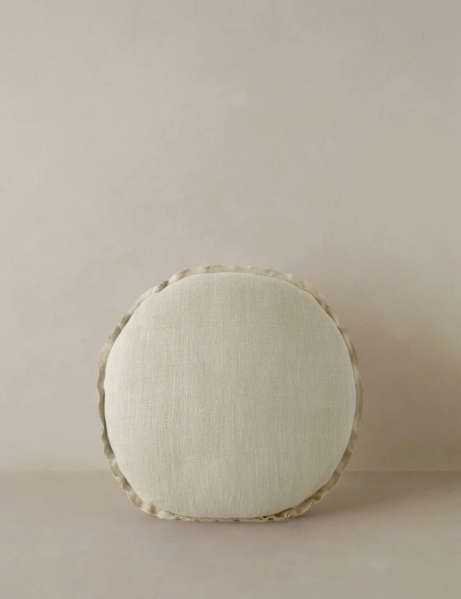Adding throw pillows to a space instantly makes it feel cozier and more welcoming. Take an effortless approach with this round linen pillow, woven from superior-quality long fiber flax for natural texture. With its stitch detail and flange trim, this decorative pillow is an easy-to-style pop of color for any room.