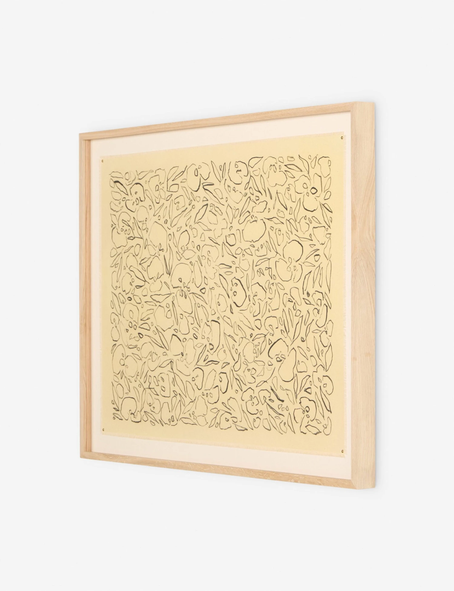 Organic yet composed, this abstract artwork draws the eye with its delicate linework set against a cream backdrop. The composition is floral, rhythmic, and quietly expressive, echoing elements of nature while maintaining a distinctly modern edge. This piece brings a warm, refining note to curated wall decor.
