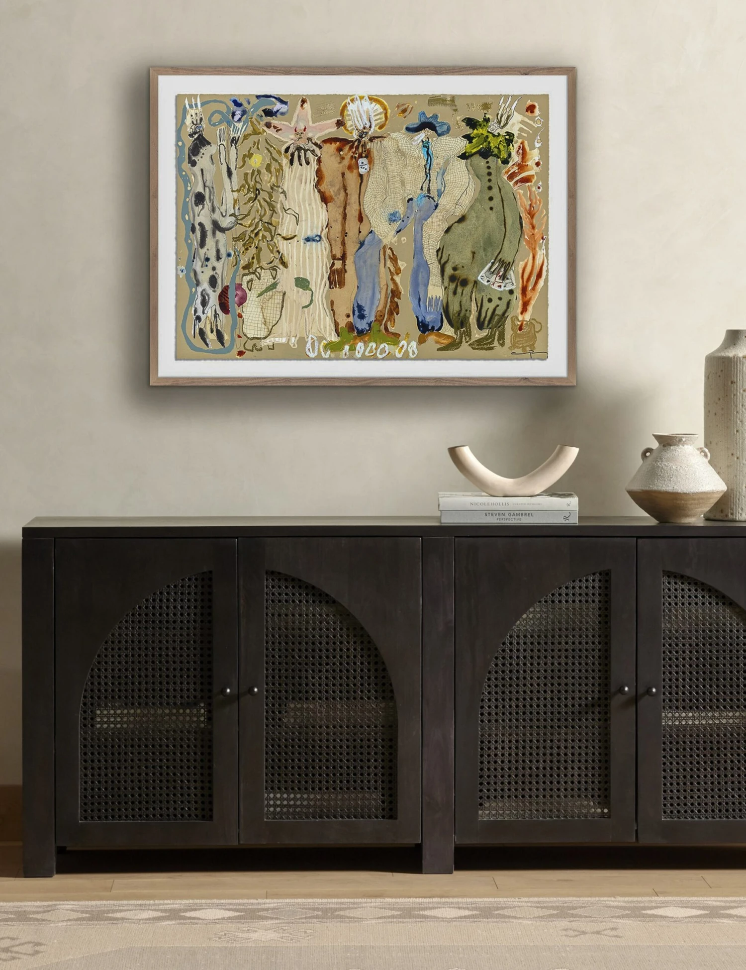 Caroline Pinney’s artwork has a vibrant style that captures subjects with lyricism and movement. Warm, earthy hues and fluid lines infuse the piece with vitality, making it a captivating centerpiece or a compelling layer in a curated gallery art wall.
