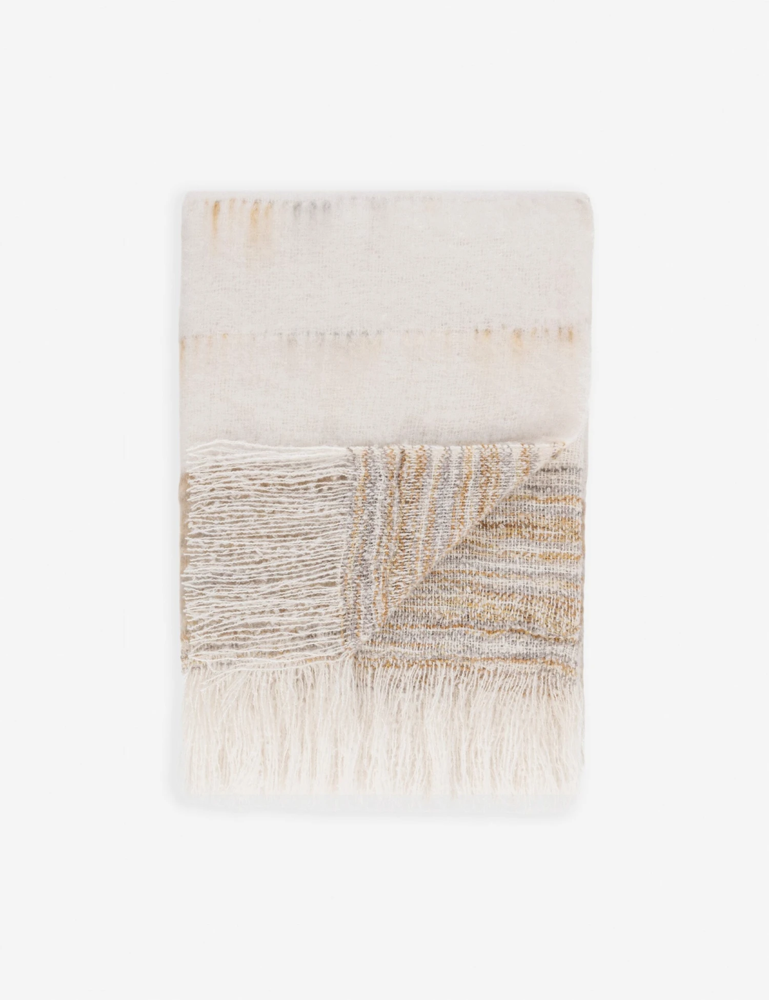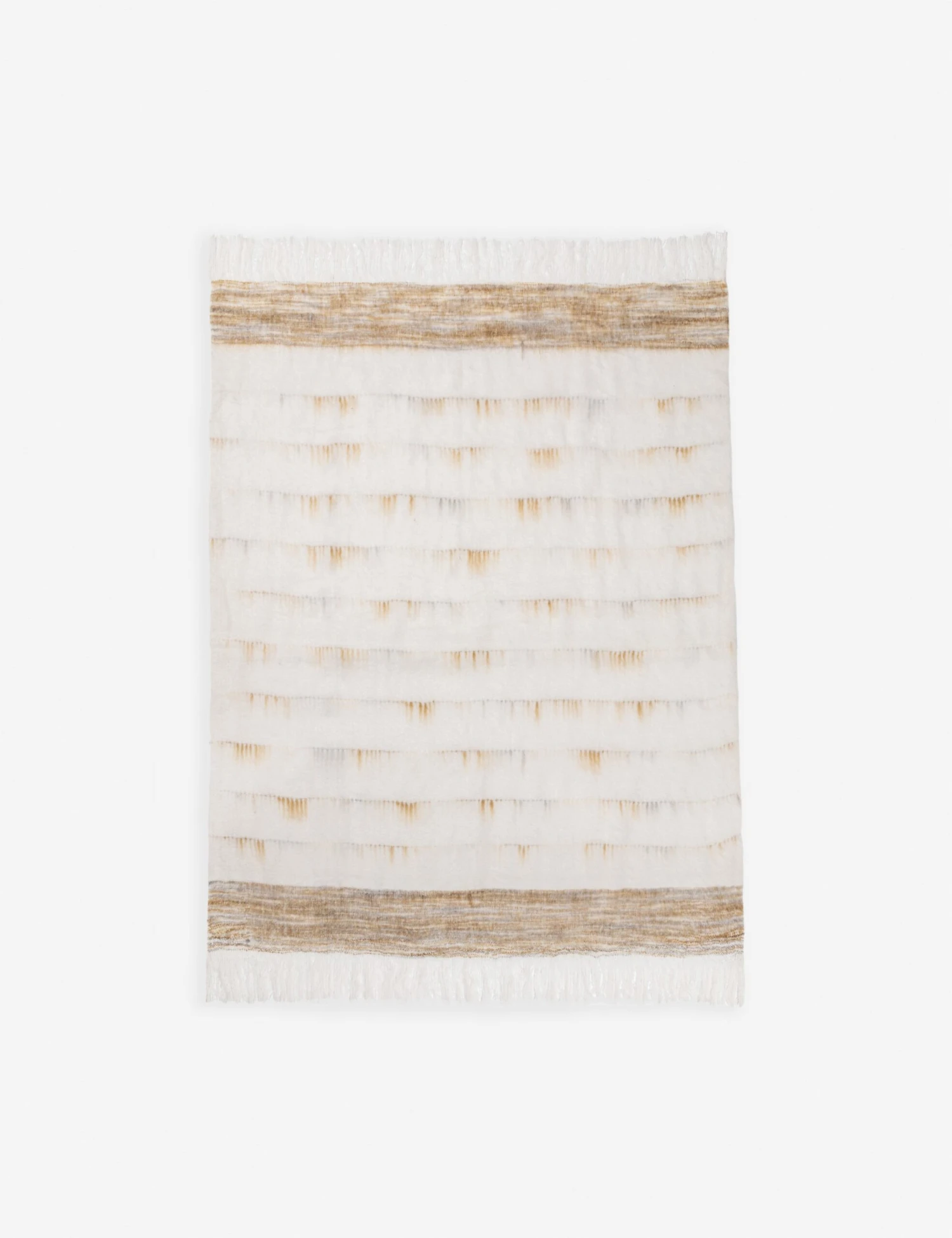The Boehm throw wraps you up in soft-comfort weave. Its neutral palette of ivory with rust accents folds into modern spaces with a grounding touch. A thick fringe completes the look for a relaxed, inviting accent whether draped over your bed or sofa or folded and stashed in a basket.