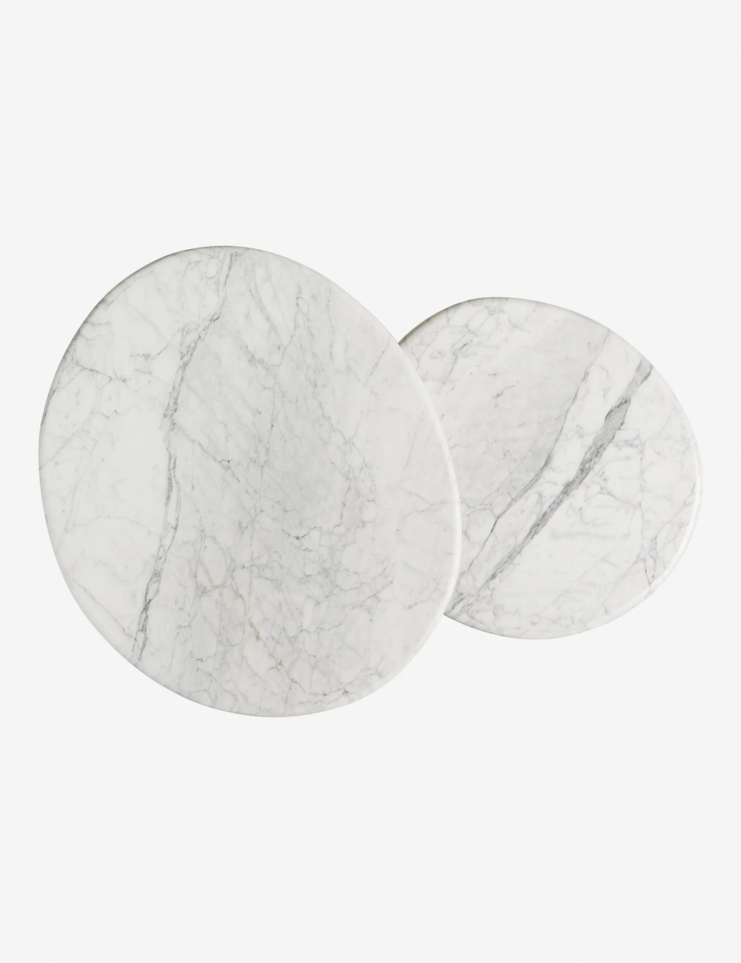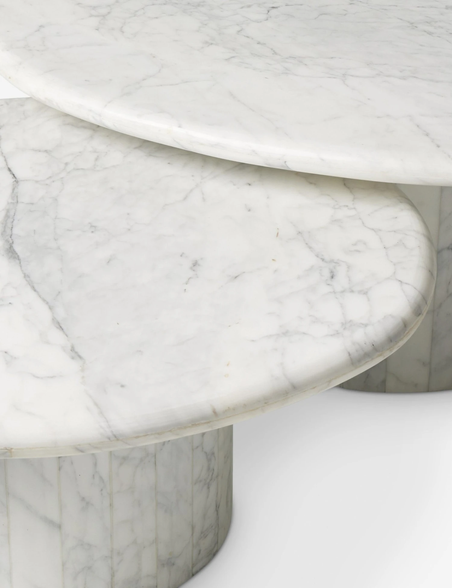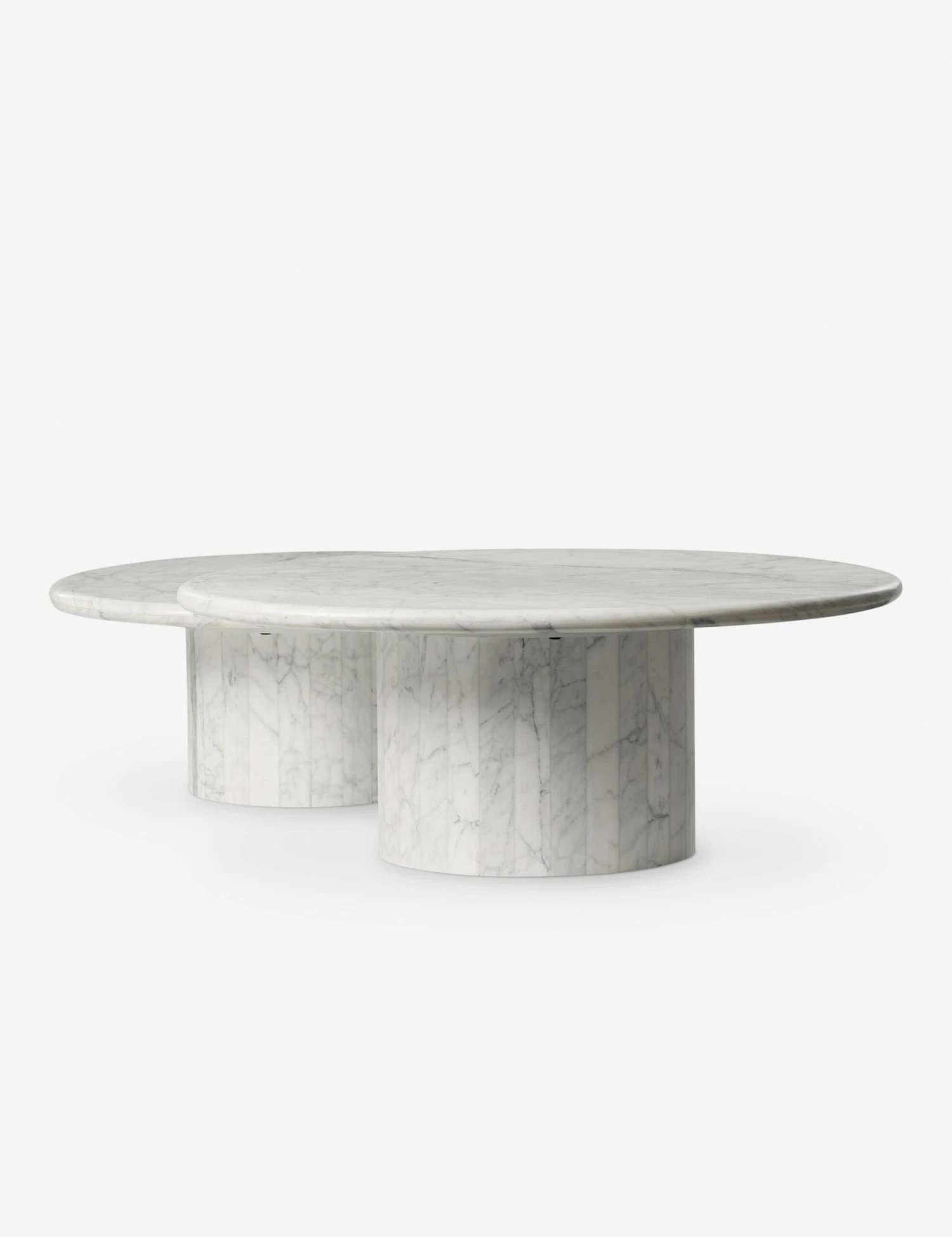 Elemental yet elevated—this nesting marble coffee table brings sculptural elegance to your space. Cylindrical bases support round tops with natural veining, creating a clean yet striking silhouette. Place this pair together for layered impact, or style them as accent tables in your design.