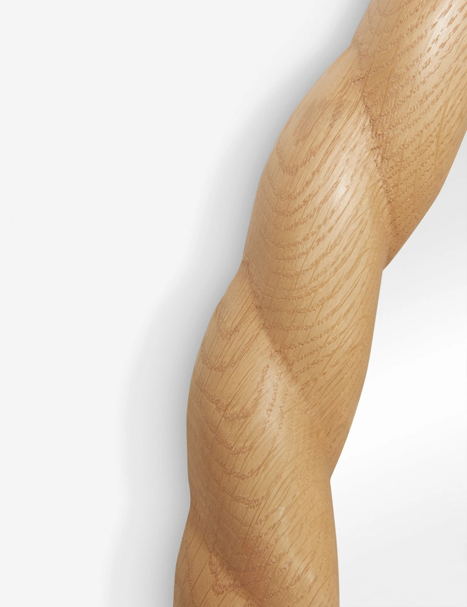 In this stylish mirror, light oak provides natural grain texture with a twist. The braided wood frame is decorated with ball finals, bringing a chic look and feel to your mantel, dresser, or console table. This mantel mirror is from our exclusive Sarah Sherman Samuel collaboration and features all the trademarks of her warm, edited style.