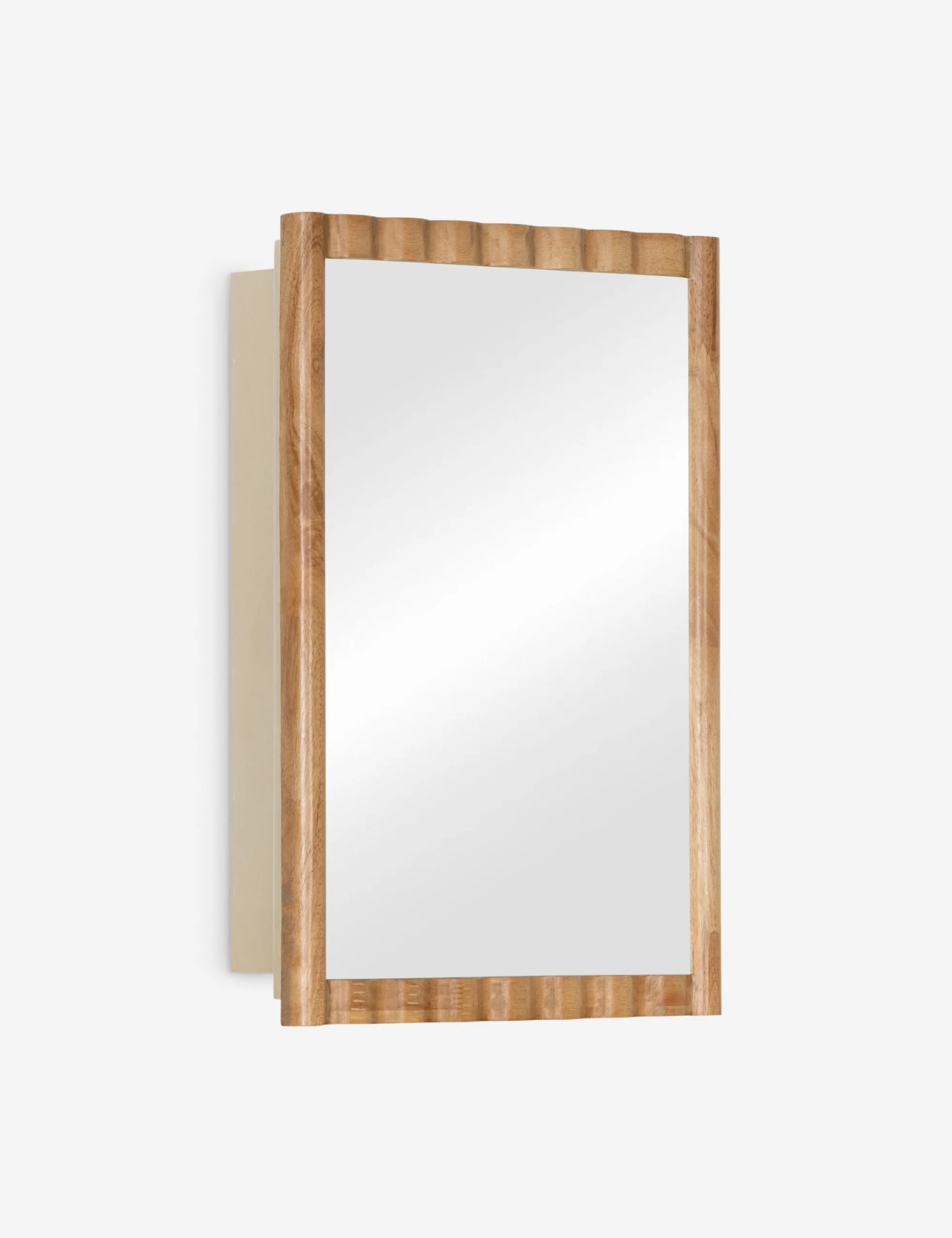 Rippled lines and natural wood grain give the Brannic medicine cabinet its refined edge. With a reversible door and storage inside, this piece brings warmth and function to your bath, proof that minimalism doesn’t mean going without.