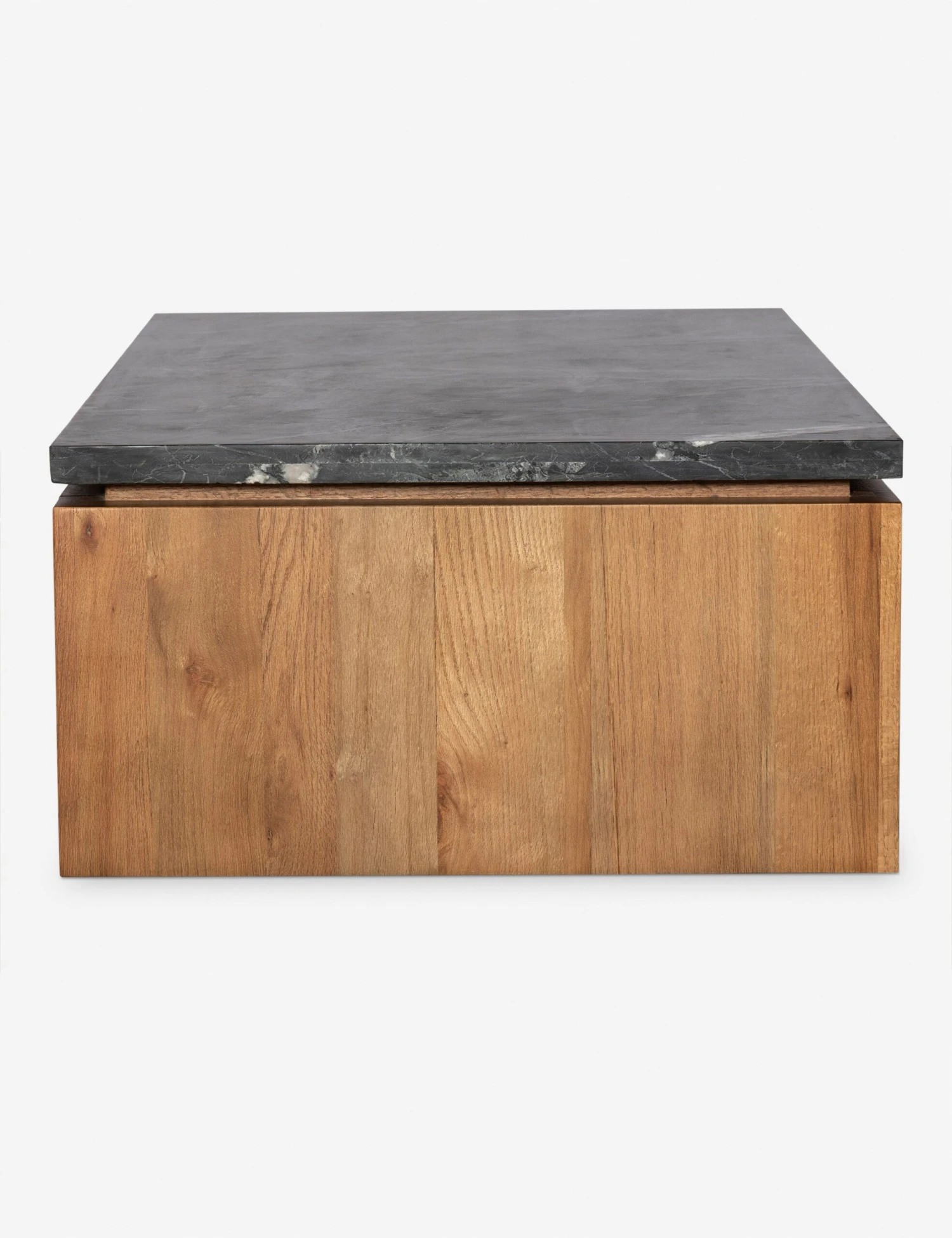 The Brickell coffee table inspires modernity with its clean-lined silhouette. A marble slab floats over the solid oak frame, offering a luxurious take on a waterfall design. We love the two-tone effect of this marble and oak coffee table for anchoring the room with visual impact.