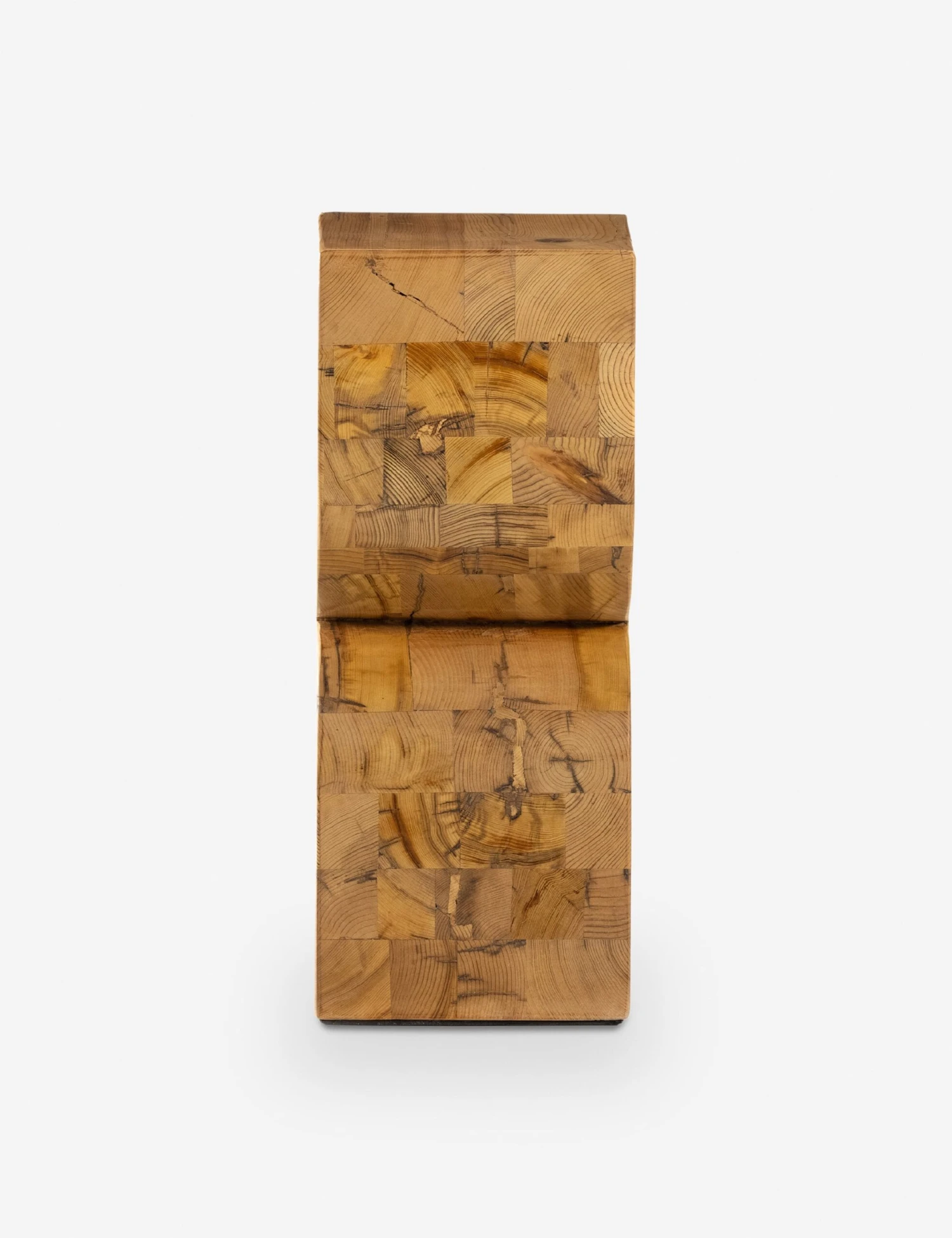 Solid pine takes on a sculptural form in this striking pedestal. The elemental design is perfect for holding decor in an entryway or hall or can serve as a compact end table for small-space style.