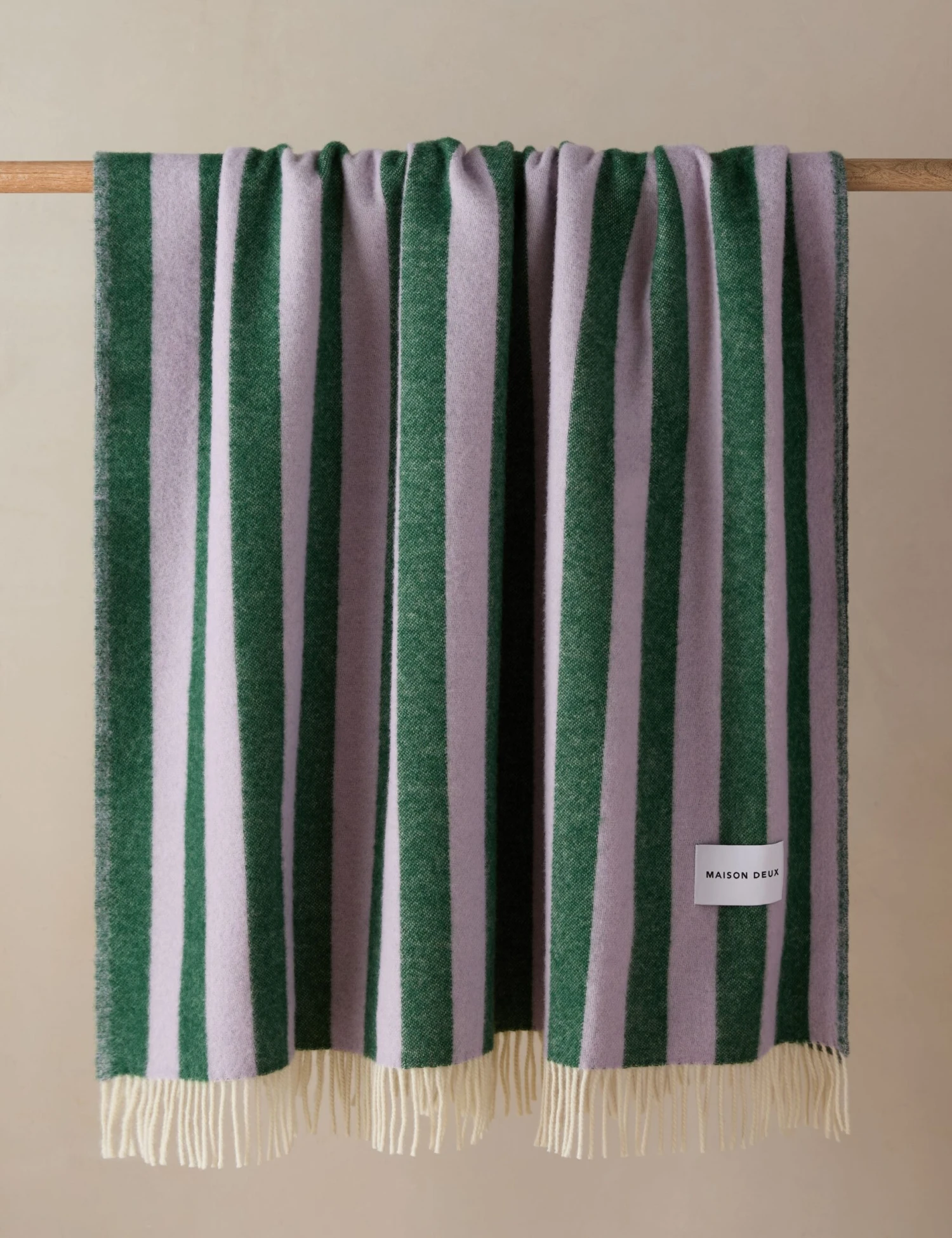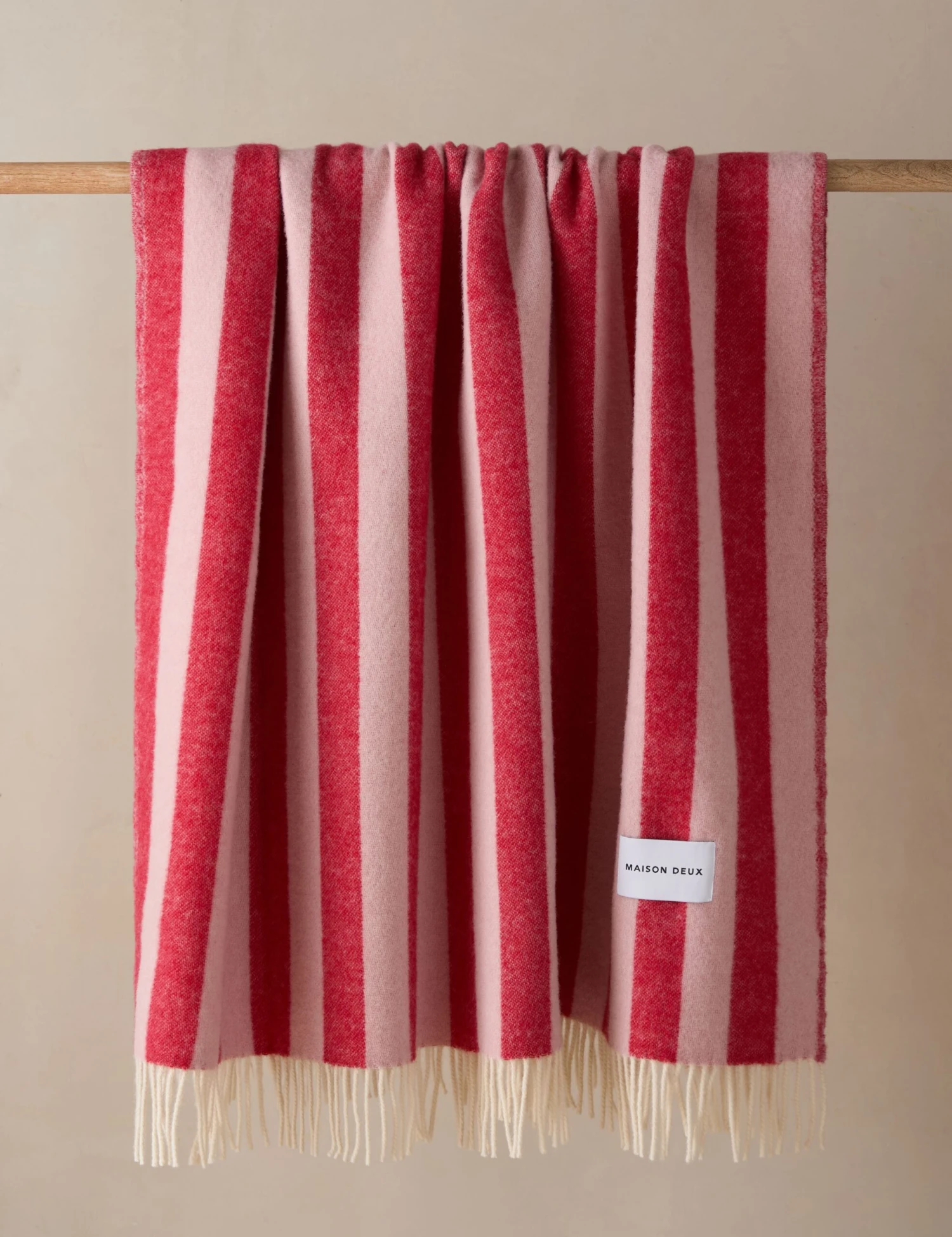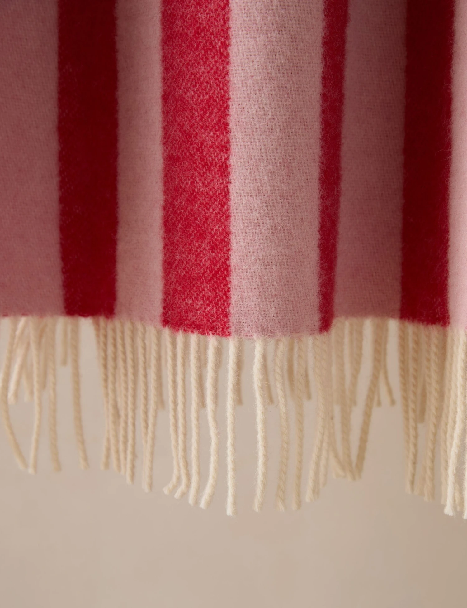 With bold stripes and a bright palette, this throw instantly livens up a room. Plush New Zealand wool and a generous size give it weight and warmth, while a thick fringe trim finishes the look with a classic touch.