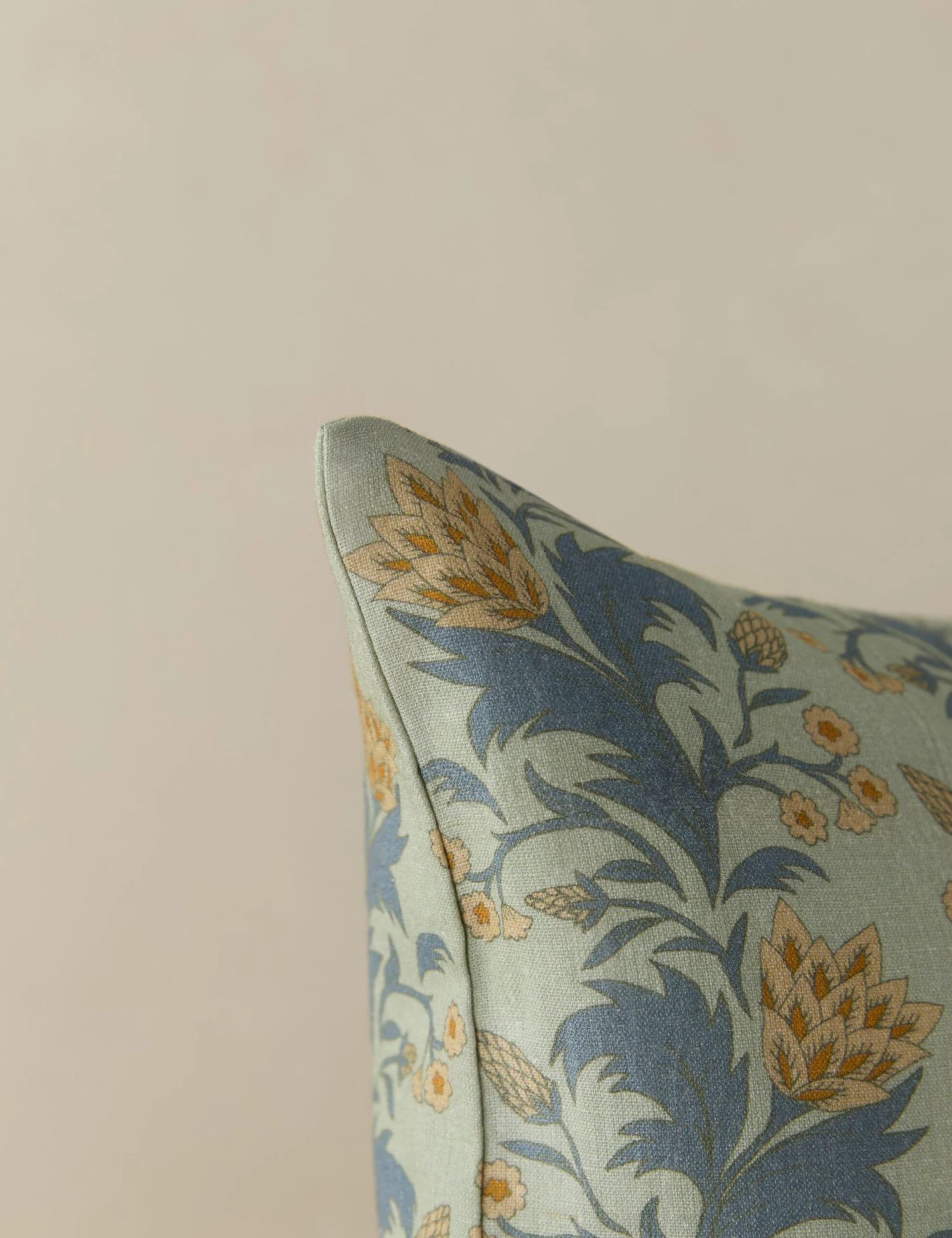 Our Catesby pillow brings a fresh note to any curation with a timeless touch of pattern. The floral design pops in a delicate blue palette, styling a traditional accent that can lift any edit. The natural fiber weave offers a soft, tactile accent pillow ready to mix into an everyday space.