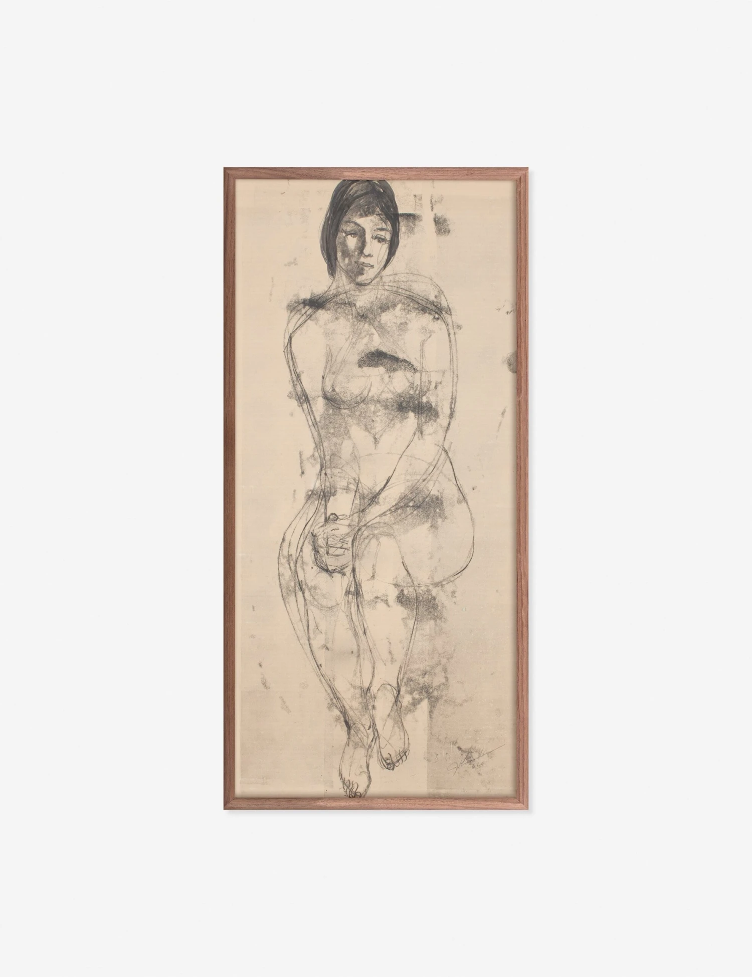 Understated yet captivating, this charcoal study of a solitary woman brings effortless poise to your wall decor. The minimalist tone of the piece offers elegance with a modernist feel that could translate to almost any wall art aesthetic—from an eclectic bedroom to a refined lounge.