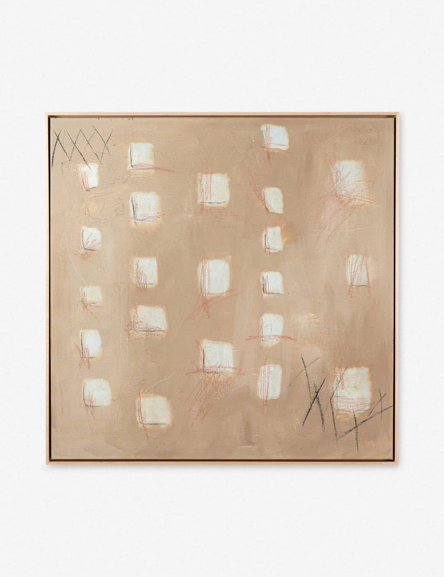 In this abstract wall art piece, artist Jamie Beckwith evokes a playful balance with a loose motif of marks and shapes. Her mixed media style features acrylic and graphite, building a richly layered work for an inspired art wall decor.