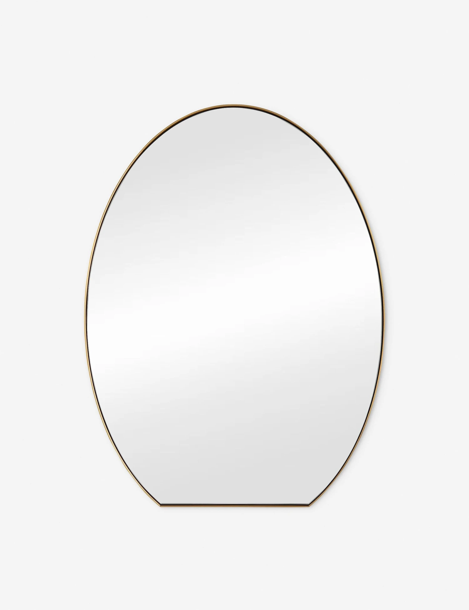 With its elongated silhouette and flat bottom, the Clifton mirror creates a compelling design, gorgeous over a console or mantel to bring brightness and reflectivity to surrounding decor. The decorative mirror features a slim metal frame in a brushed brass finish, perfect for elevating an everyday space.