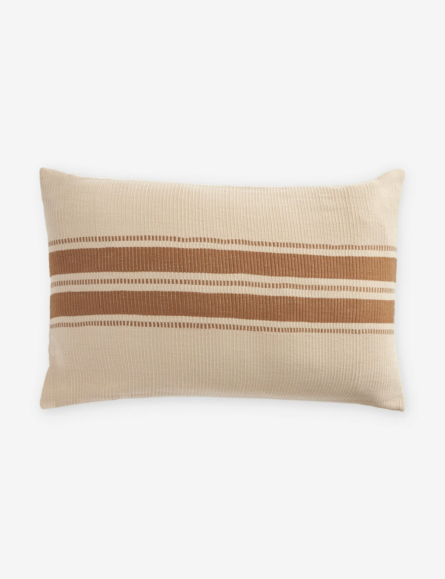 The Cumbre throw pillow is from a small-batch collection, handcrafted by skilled weavers in Mexico using a traditional technique. Each piece is made unique by subtle variations showcasing the artisan process. Earth tone stripes bring a grounding warmth to this accent pillow.