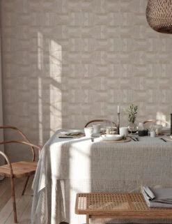 This modern wallpaper design creates soft geometric rhythm through a quilted patchwork of tonal shapes. The layered pattern adds warmth and dimension, offering a versatile backdrop with a quiet architectural edge. This peel and stick wallpaper lets you instantly transform any space with easy installation and residue-free removal.