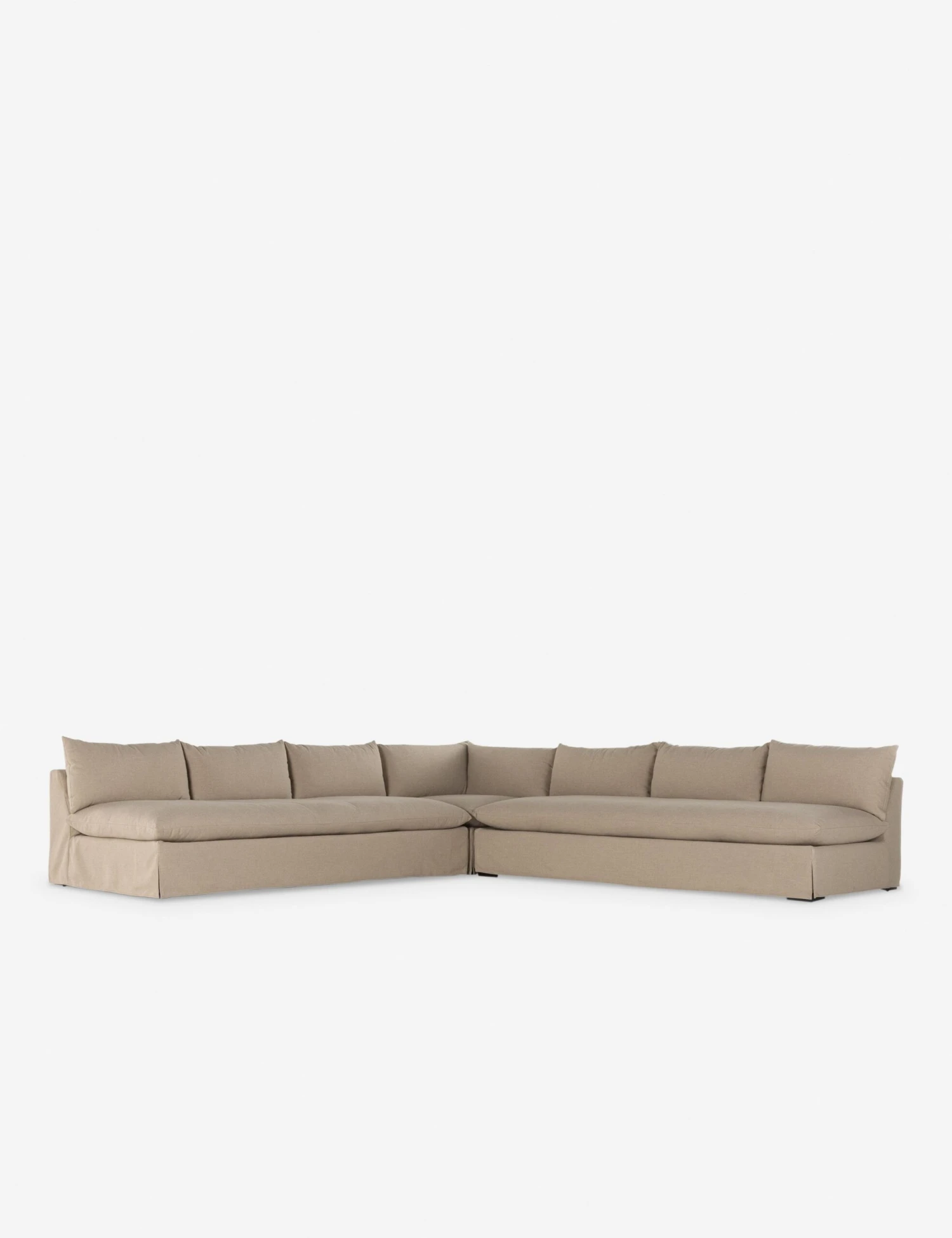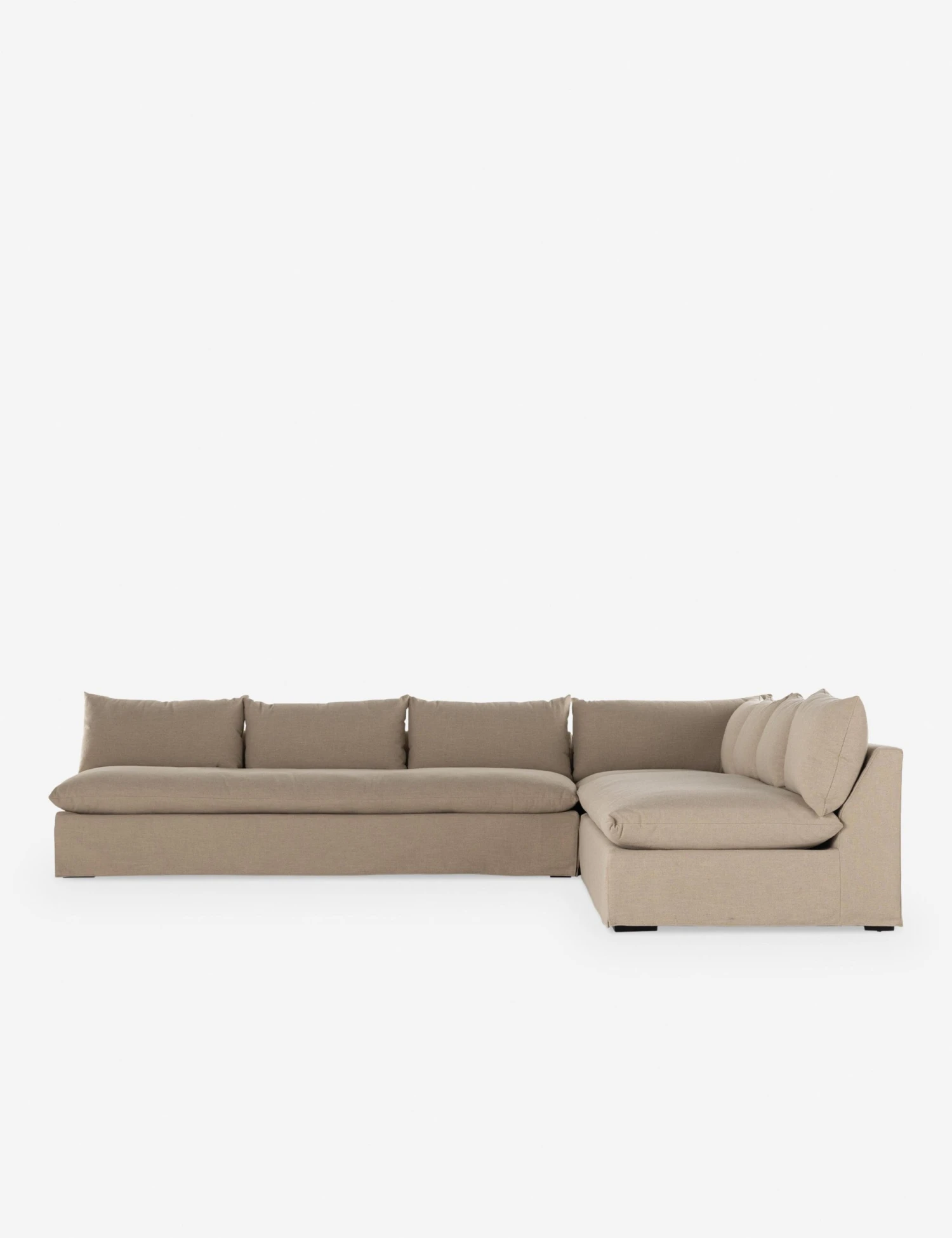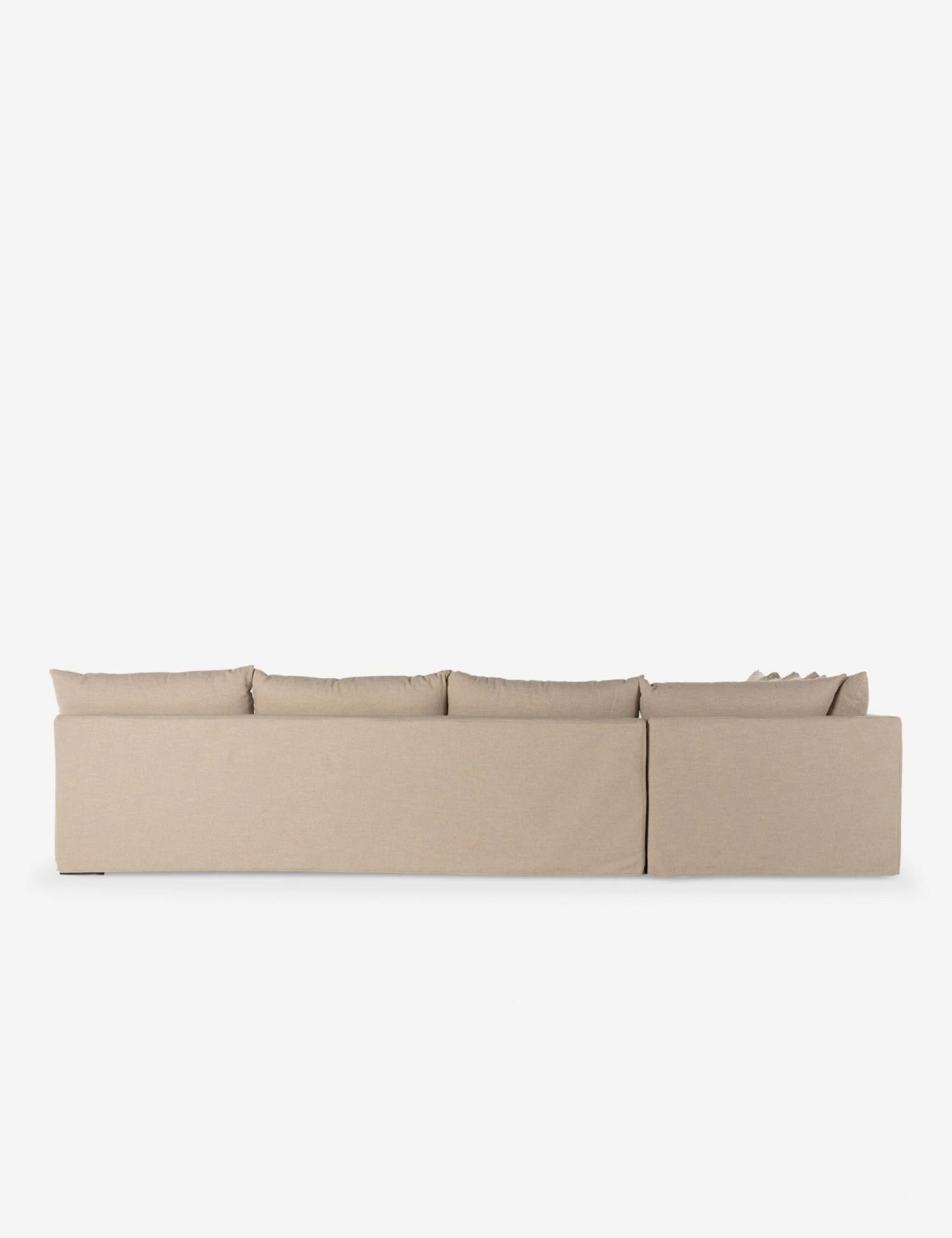 The armless design of this sectional sofa creates an open, inviting look while still feeling chic and modern. Cozy up in this plush sectional featuring loose back cushions, an easy-care slipcover, and plenty of space for everyone.