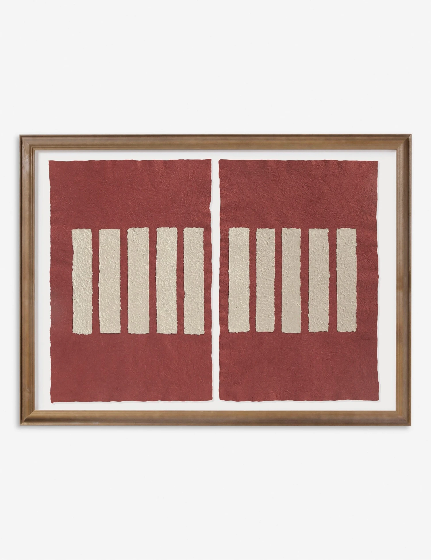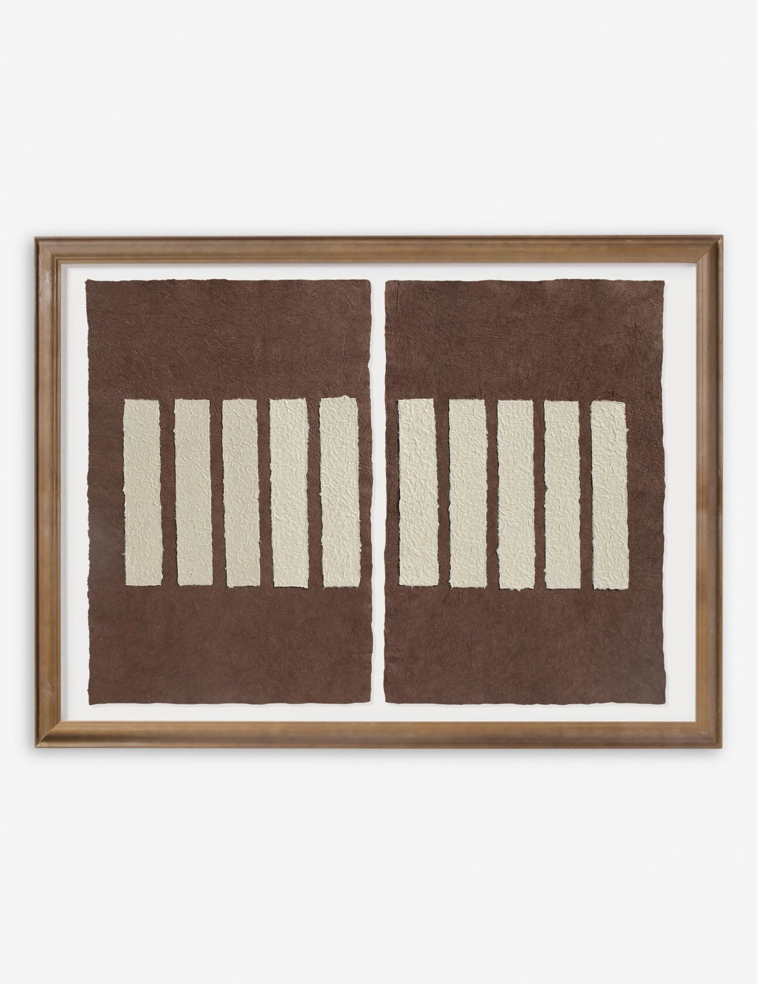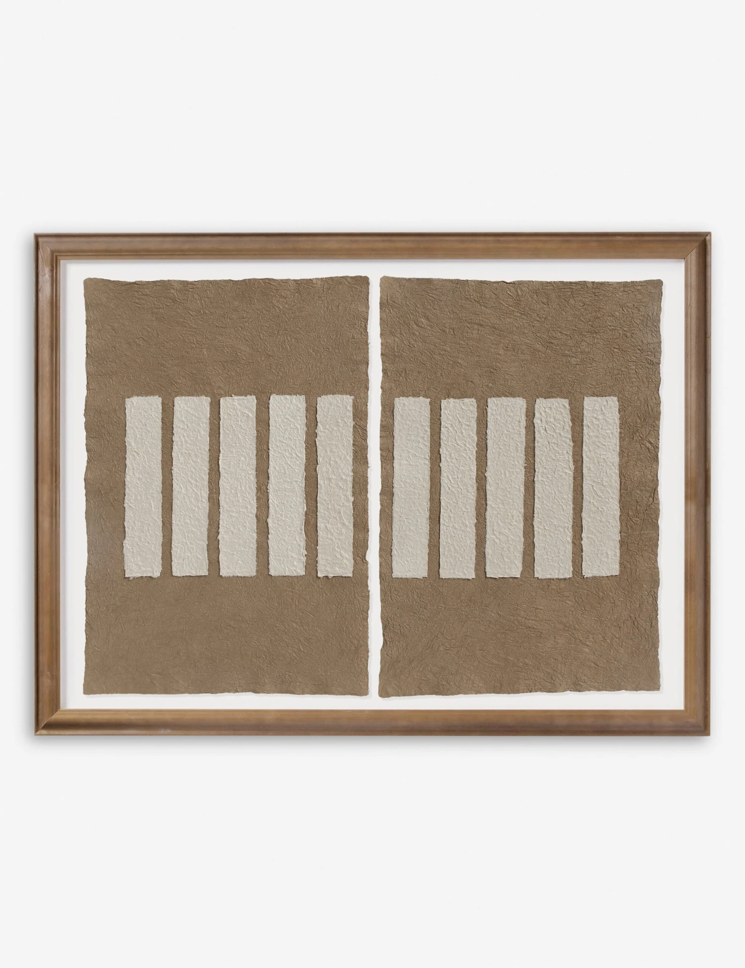 Deimos plays with linear composition and soft contrast in a handmade paper collage. Framed in light walnut, the minimalist palette offers a striking focal point for modern wall decor. This diptych artwork is perfect for creating a statement feature with balance and impact.