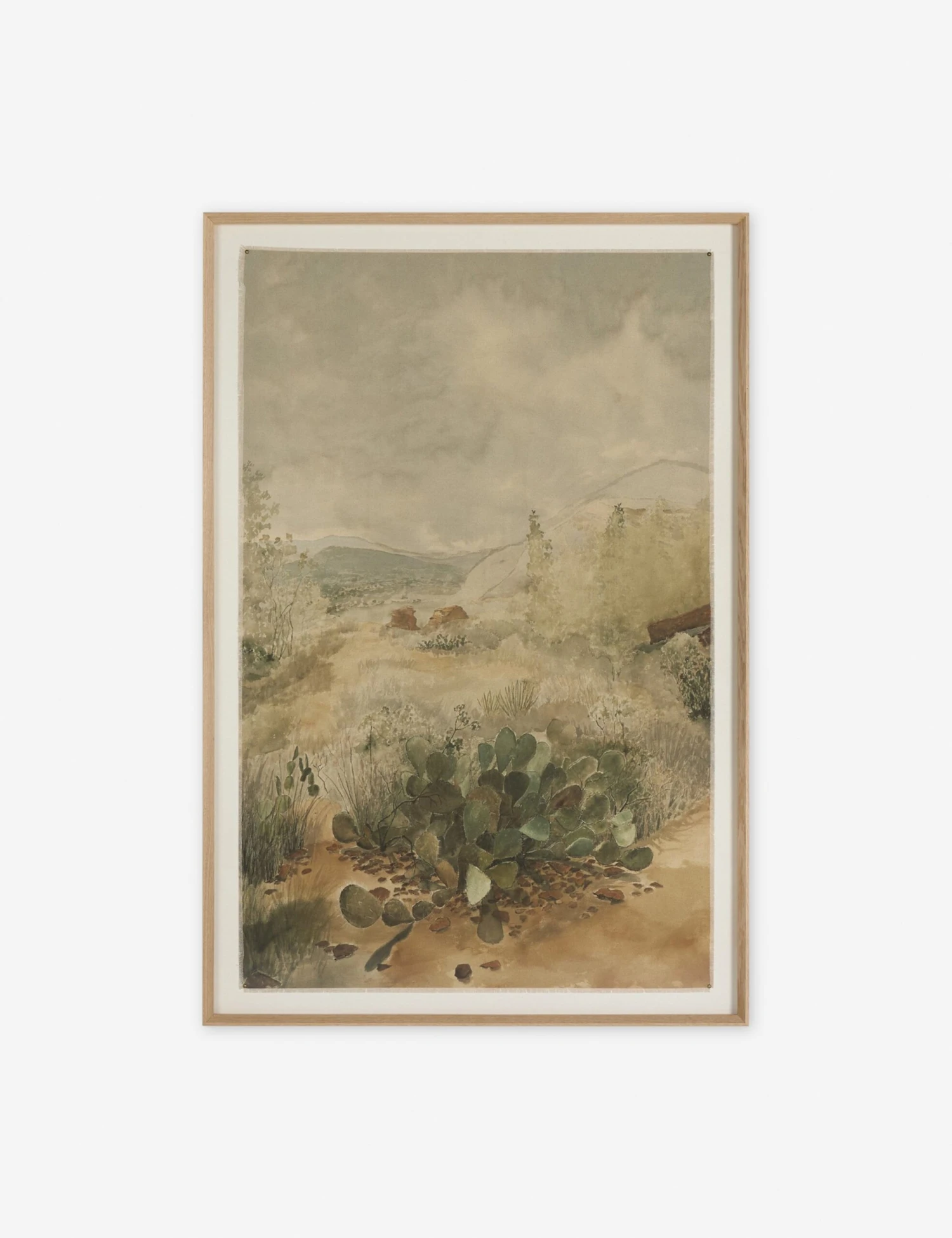 A sun-washed palette with soft greens and warm sienna evokes the quiet drama of hilly desert terrain in this wall art by Aileen Fitzgerald. We love the atmospheric depth of the layered landscape as it fades toward a far horizon. This piece is a giclée print on raw canvas, capturing the details and texture of the original artwork.