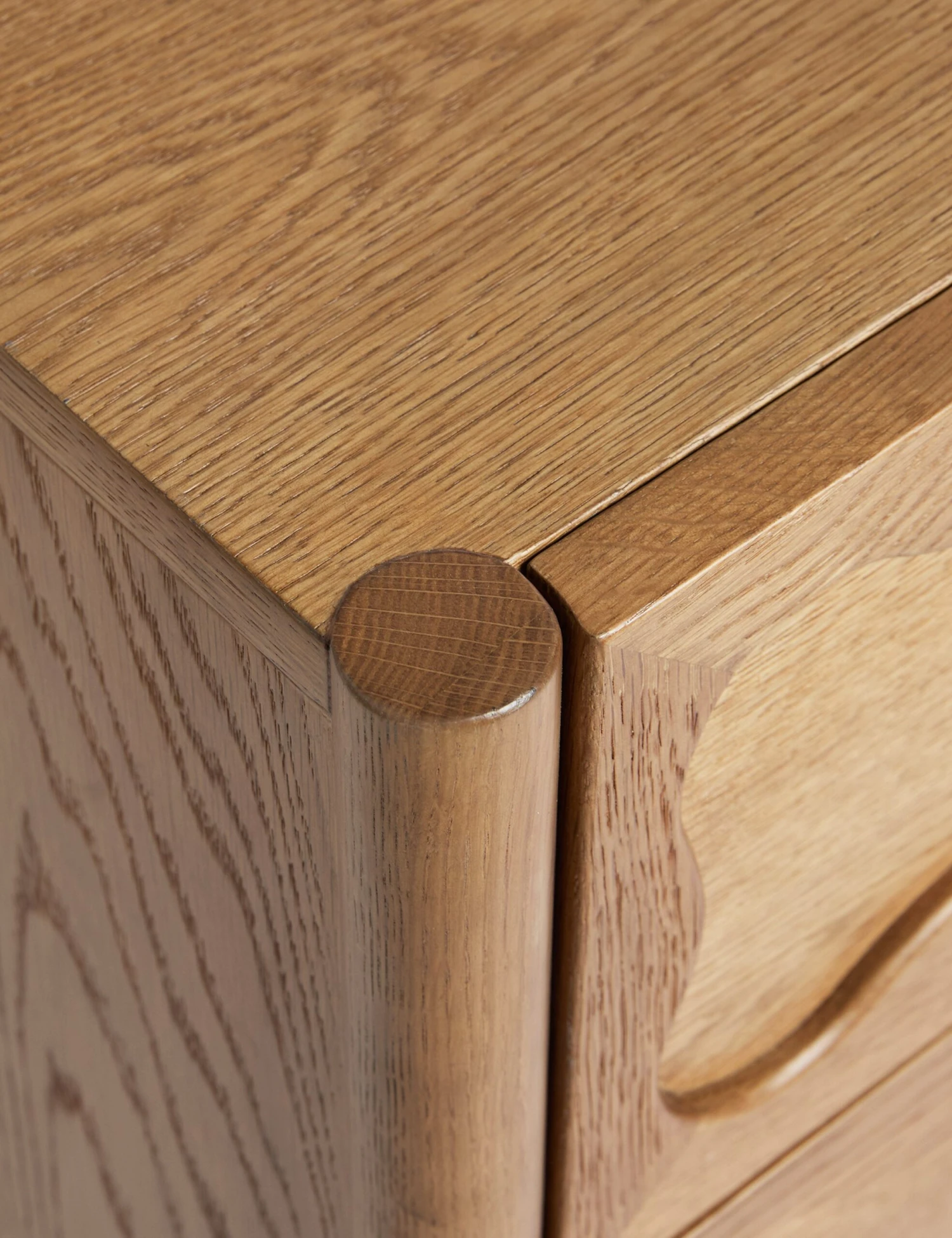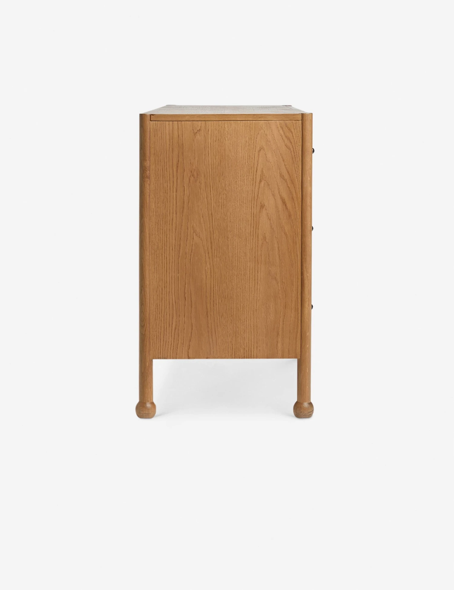 In this exclusive collection, Aimee Song brings her beloved fashion sense home with artful elements designed for living. The Fontaine dresser offers modern bedroom storage with a timeless touch. The wood case holds six spacious drawers with wavy detailing, black knob pulls, and ball feet to complete the look.
