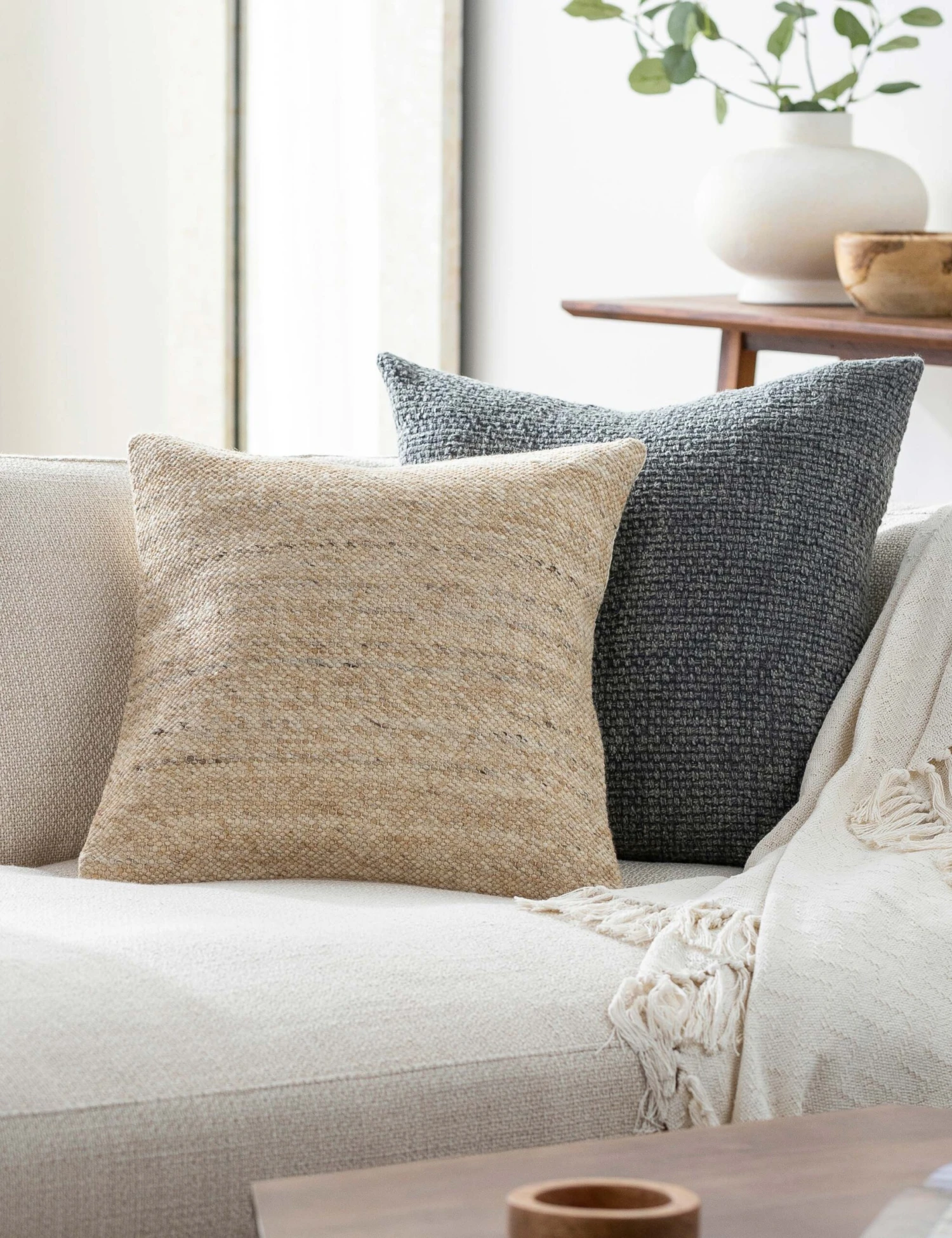 Add a touch of warmth and sophistication to any room with this versatile throw pillow. Its earthy, heathered tones will ground your space with a natural woolen touch. Pair this accent pillow with a darker design for a moment of impact on a sofa or sectional.