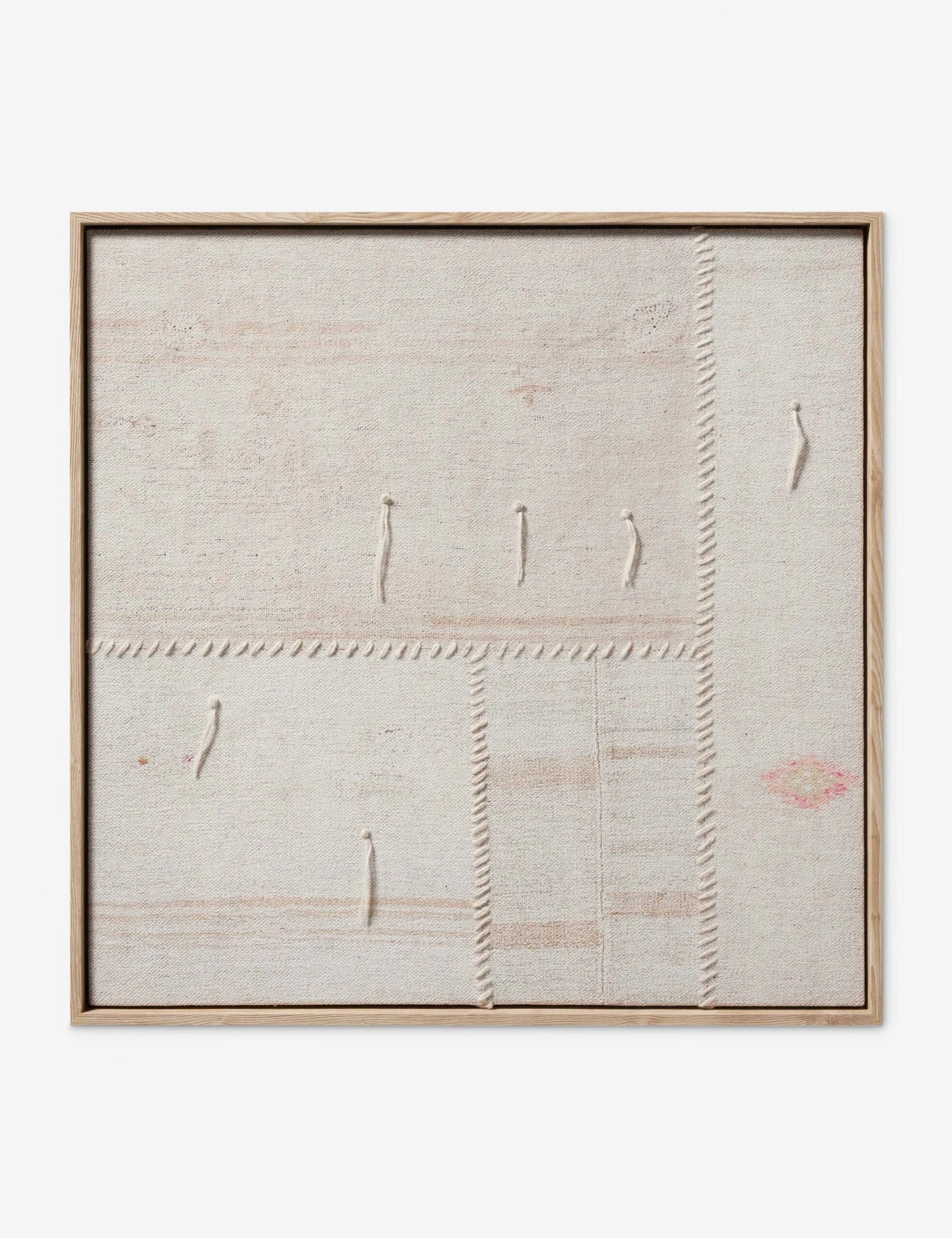 Textile wall art can transcend the frame, becoming a showcase of the process and materials that go into its construction. This patchwork assemblage is stitched together to create a pattern block design that finds unity through minimalist tones and a textural weave. The visible seams and pulled thread accents add to the sense of artistry and make for a rich addition to modern wall decor. With its square frame, this piece can fold into hallways, offices, or gallery walls.