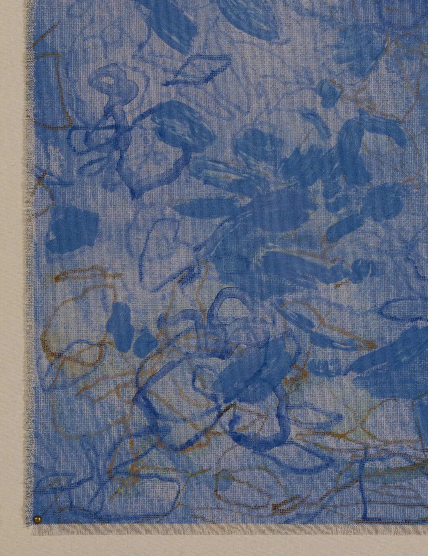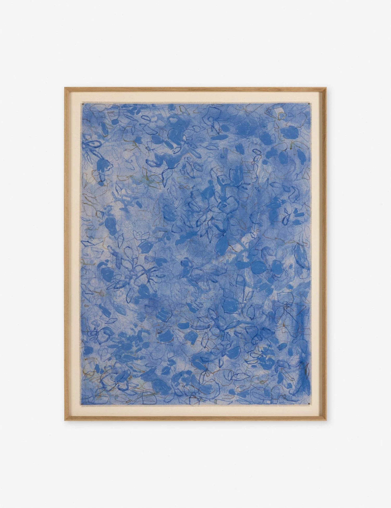Organic yet composed, this abstract artwork draws the eye with its delicate linework and magnificent swirl of blues. The composition is floral, rhythmic, and quietly expressive, echoing elements of nature while maintaining a distinctly modern edge. This piece brings a quiet drama to your wall decor.