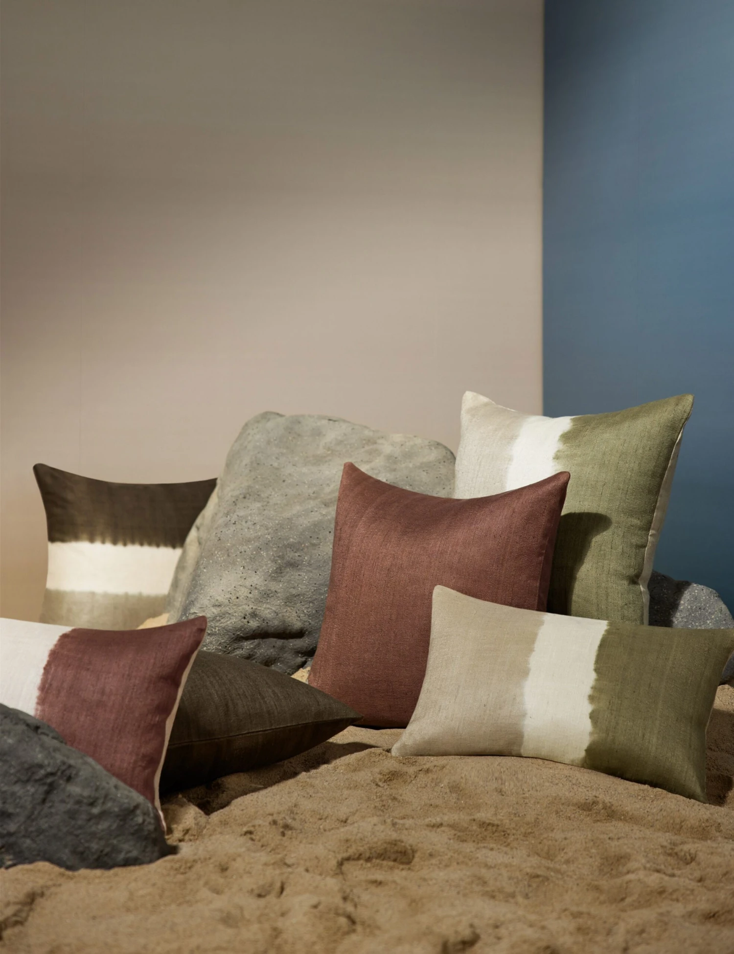 James Perkins’ art inspires elemental impact—cutting across mediums with explorations of sculptural forms and nature. In this exclusive collaboration, we translate his work into a collection of textiles and wallpapers for your home. This accent pillow evokes the grounding tones of the organic world. Its silk case and down fill make this a luxurious addition to any throw pillow collection.