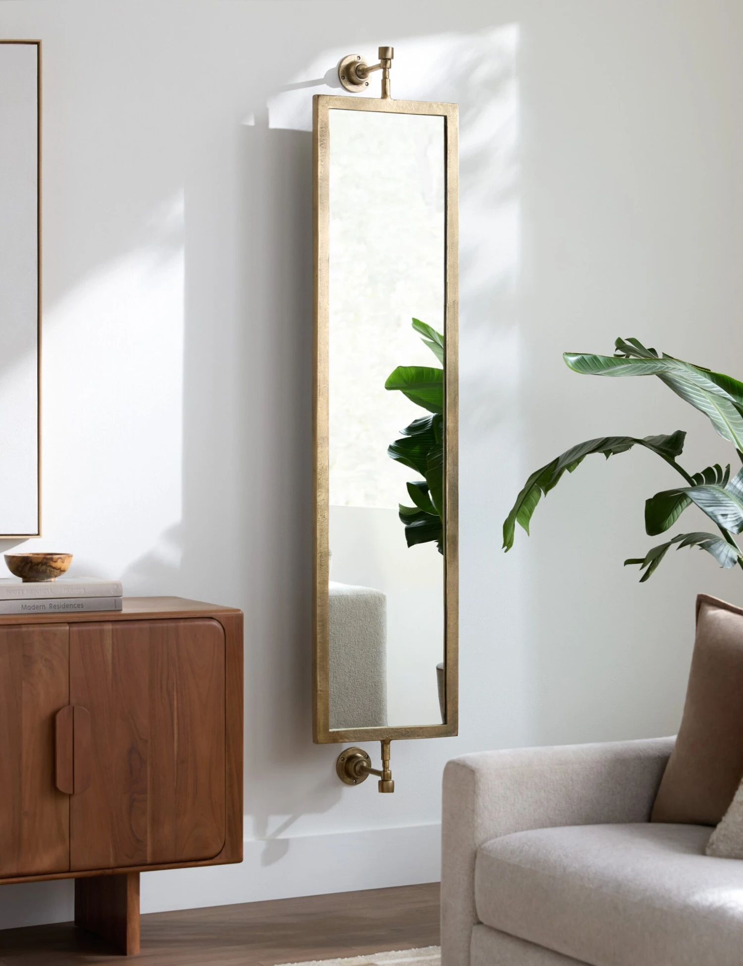 The Hamil mirror makes a bold impression with its sleek, structured form. Designed with a tall, narrow profile, the slim metal frame is accented by bracket mounts at the top and bottom for a subtle industrial detail. Style this full-length mirror in a bedroom or hallway to reflect light and elongate the space with a tailored finish.