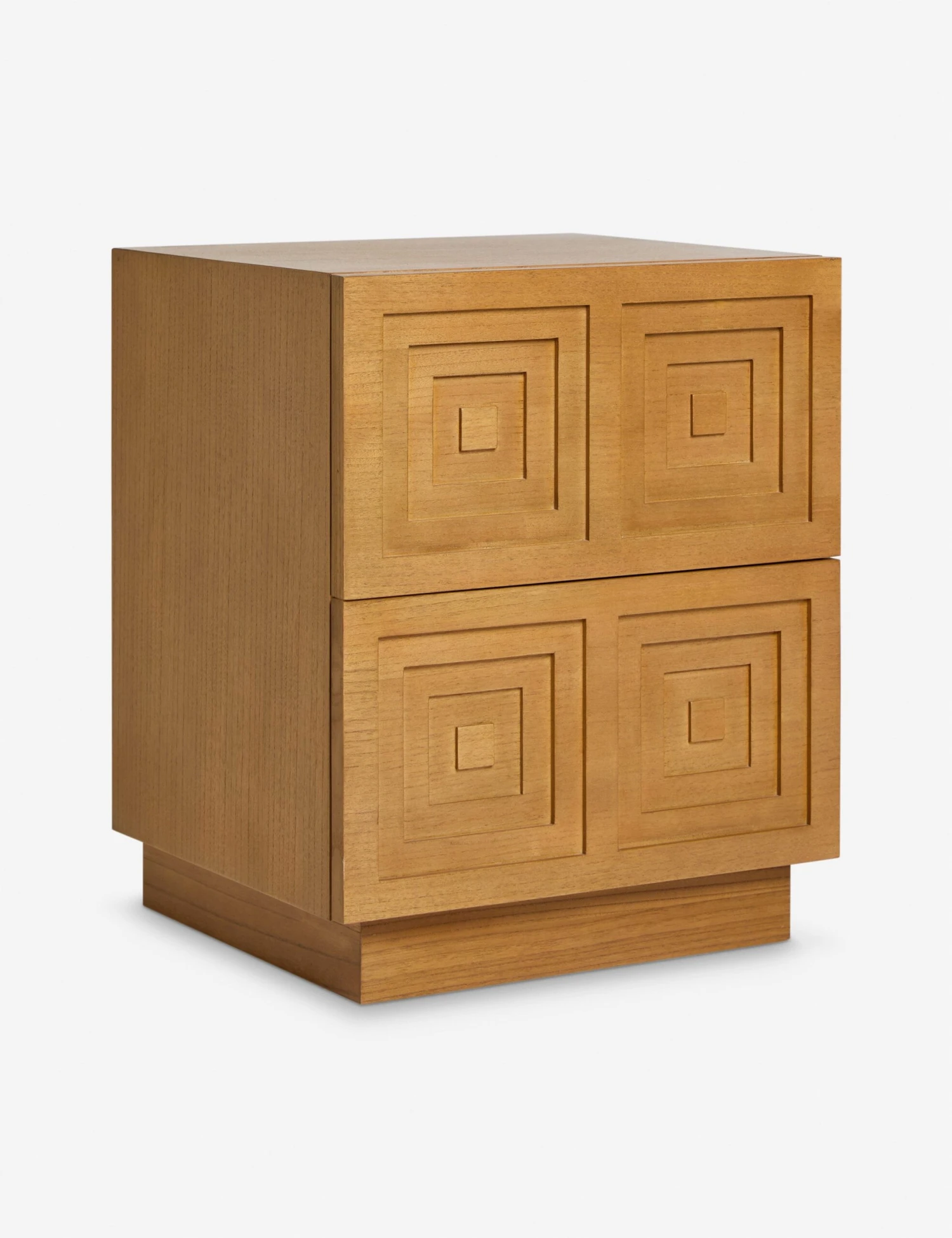 Turn up the texture in your edit with our Hanson nightstand. This wood design offers a good dose of natural grain warmth with a dimensional grid cut in relief, creating a dynamic profile for modern design. Compact yet impactful, its two push-latch drawers provide the perfect touch of bedside storage.