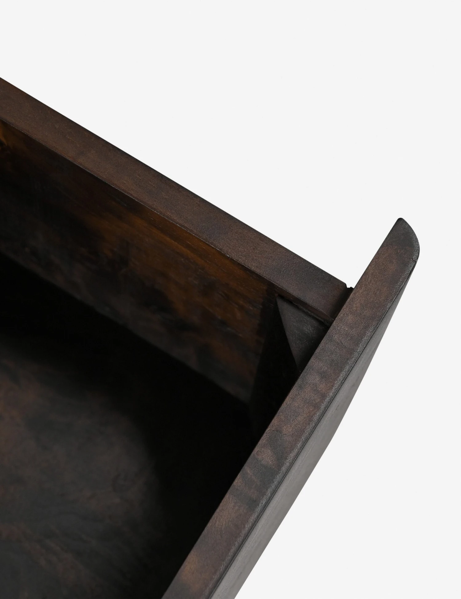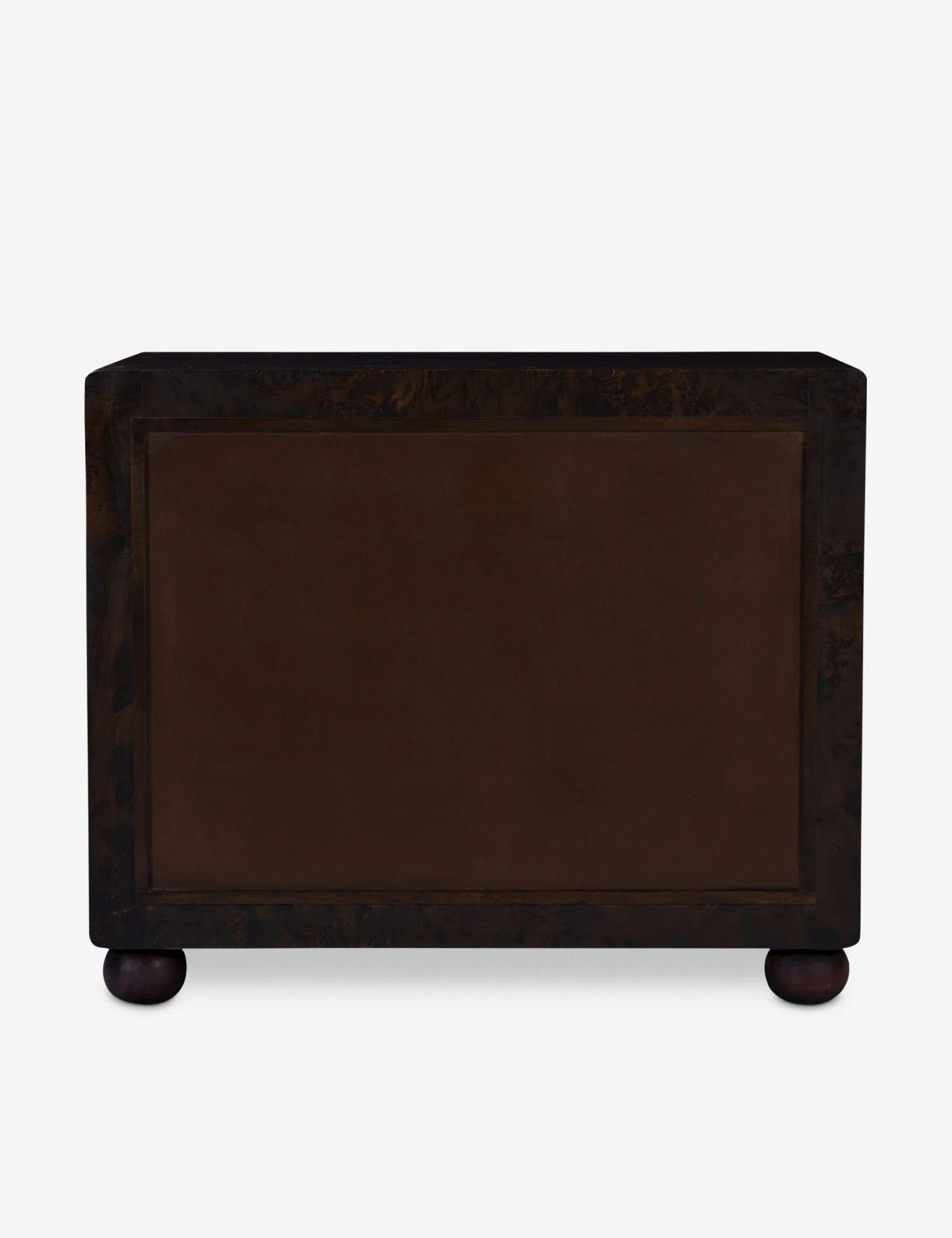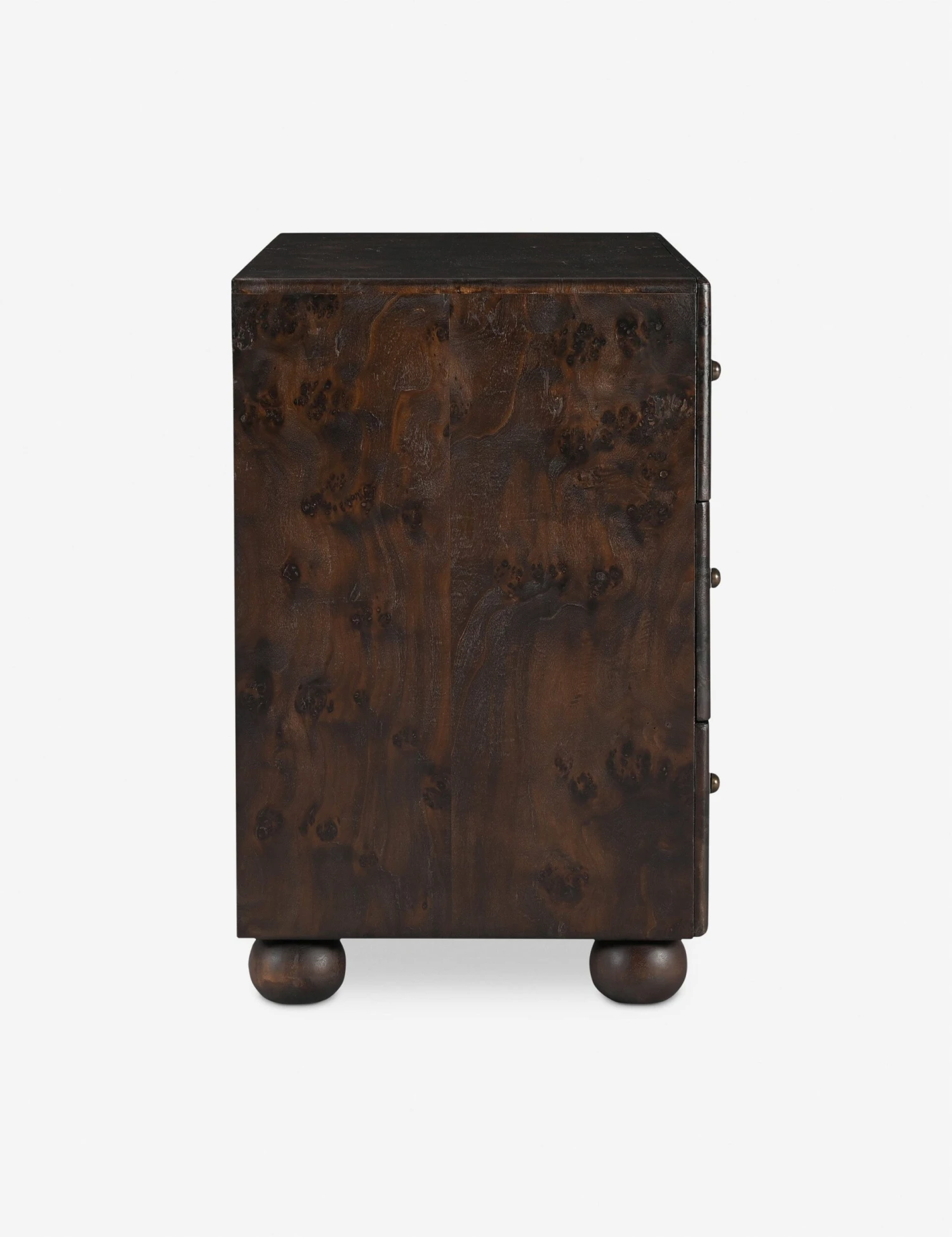 Bring a timeless finish to your bedroom edit. The Hobbes nightstand sits on bun feet with a solid bearing, clad in burl and brass for that understated touch of luxury. With three drawers, this large nightstand offers plenty of storage at your bedside or styled as a small dresser.