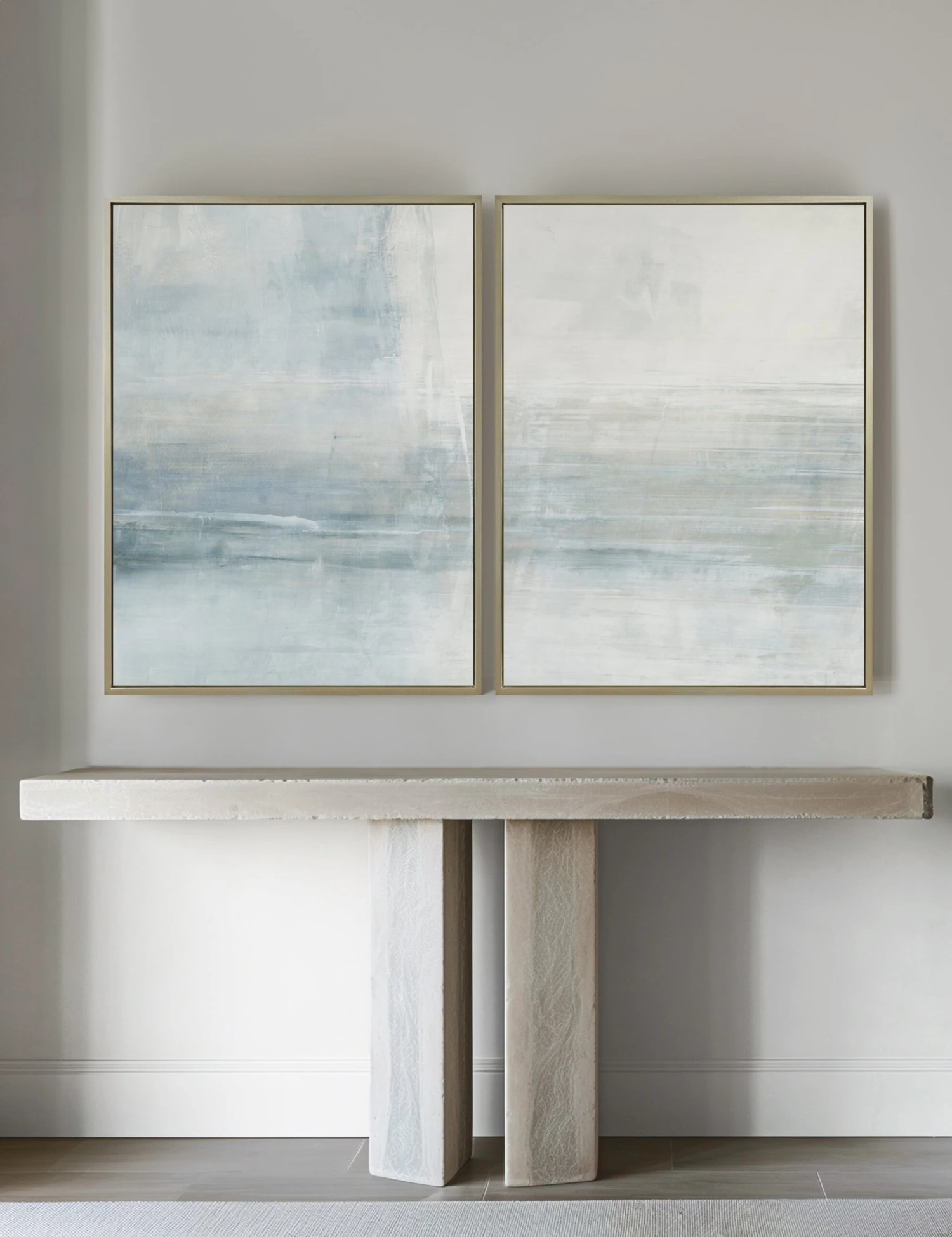 Inspire a serene setting with this abstract wall art by Carol Benson-Cobb. Its soft, layered tones evoke a sense of calm reflection while adding a quiet depth to your wall decor. We love this diptych layered into a tailored space where its understated palette can blend with other elements in the room.