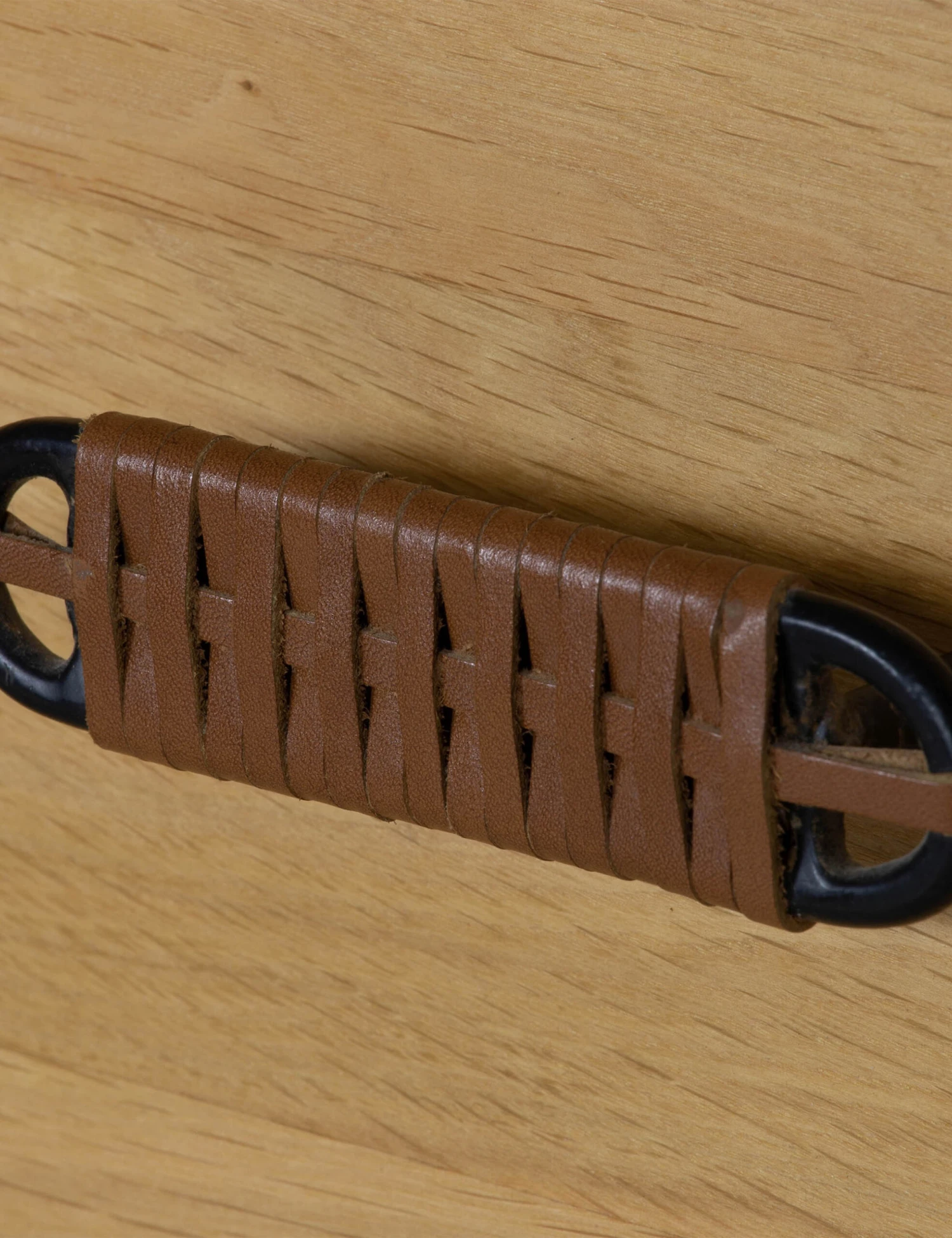 The Jaramillo collection features solid, squared oak construction, fitted with leather-wrapped, wrought iron pulls and legs for a timeless mixed material build. Six soft-close drawers offer ample storage in this versatile dresser design.