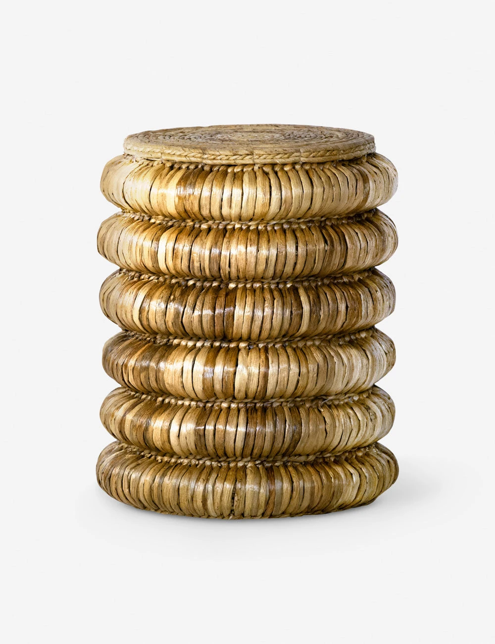 Water hyacinth fibers woven around a sturdy iron frame offer this side table a fresh, organic texture with a sturdy design. Style this end table for an earthy, laid-back touch in a richly layered space.
