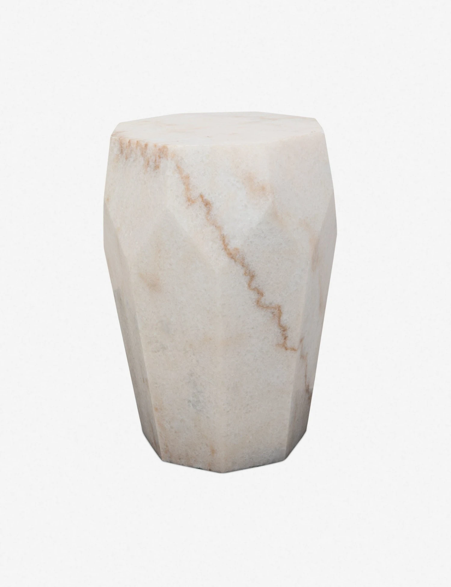 A stunning addition to any space, this side table is crafted in a luxe marbled stone, carved with a faceted design that gives it an artful, contemporary appearance.