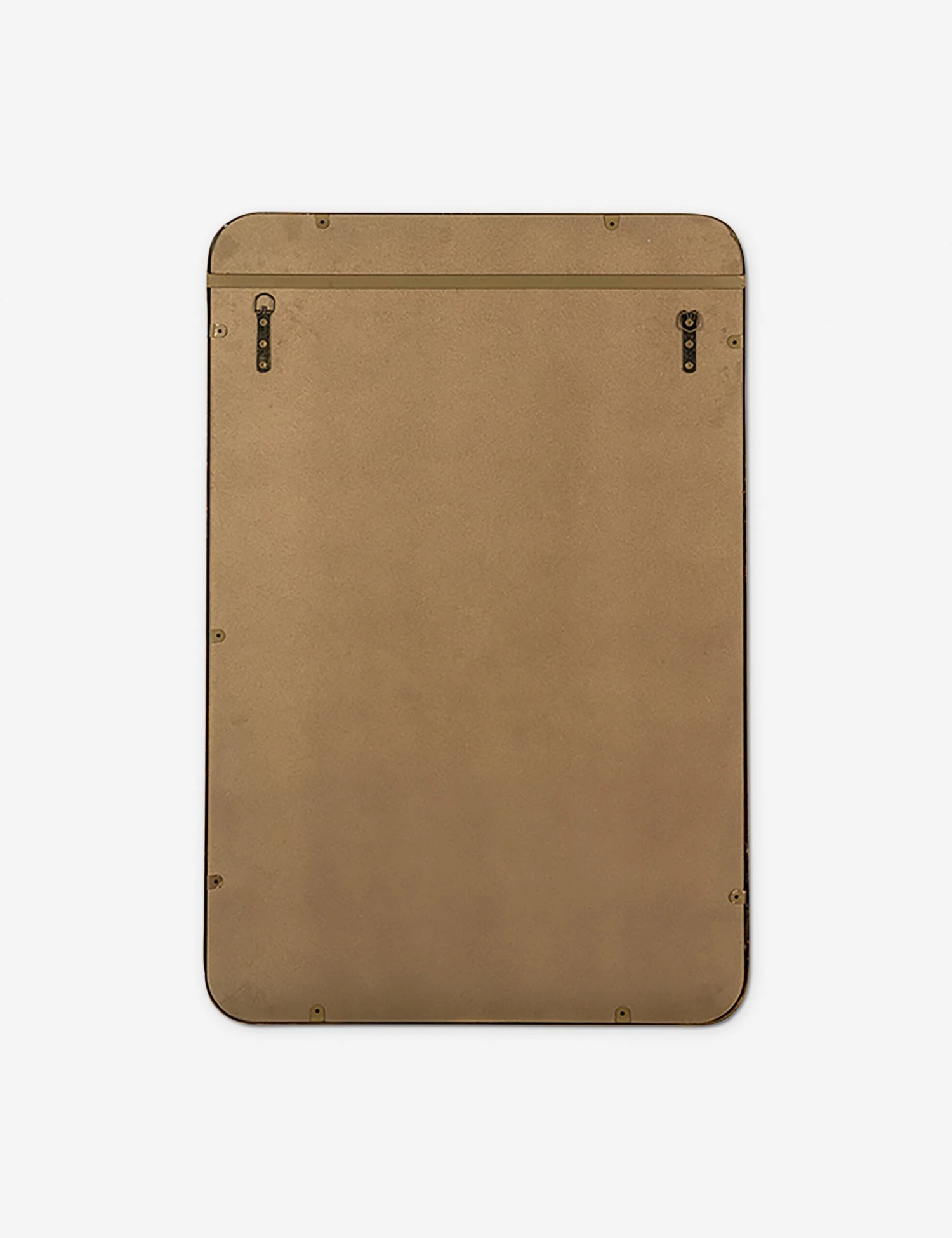Effortlessly refined, this gold-framed mirror offers a functional touch that will elevate your look. This large mirror design also features a shelf, perfect for a vanity or as a bright reflective backdrop for sculptural decor.