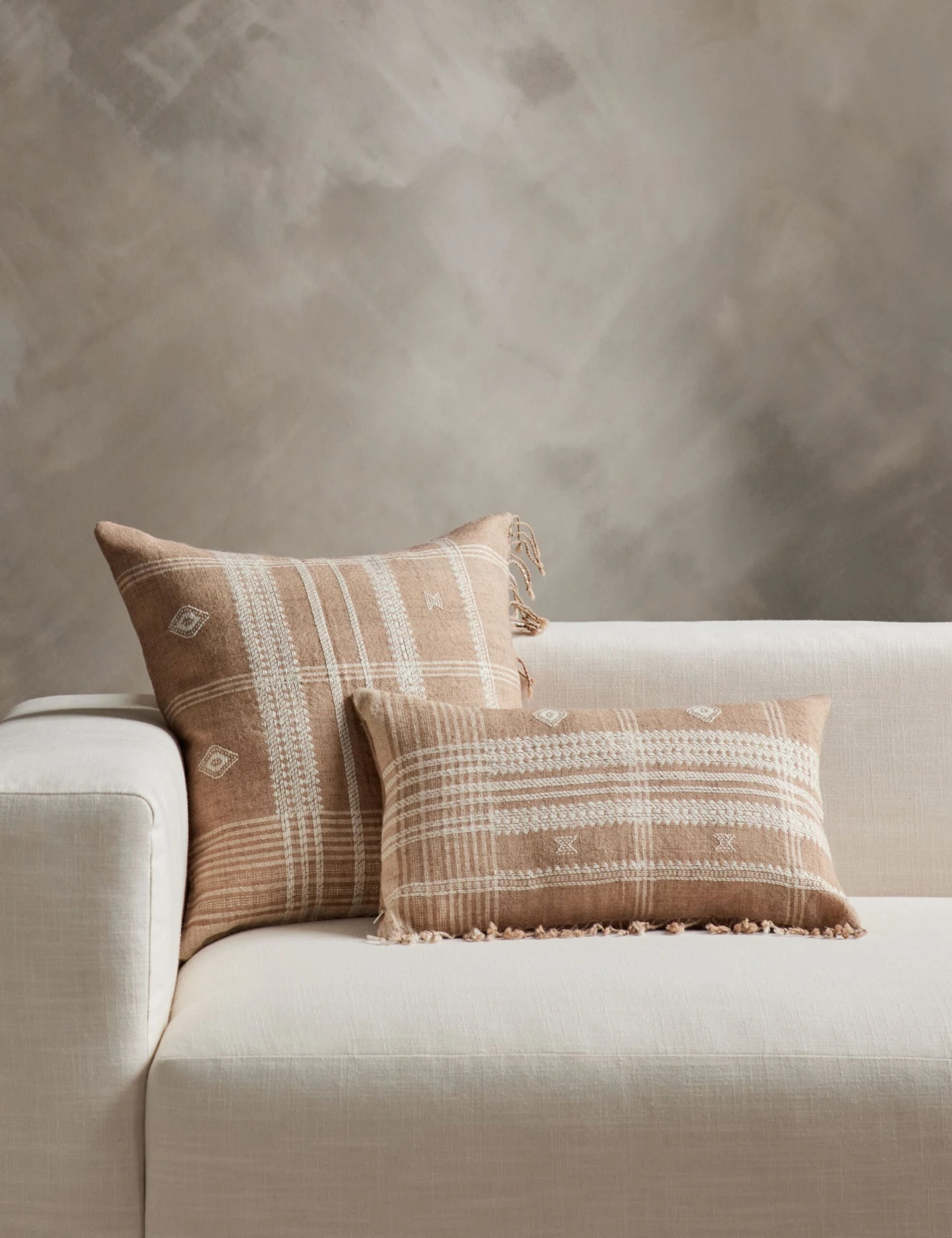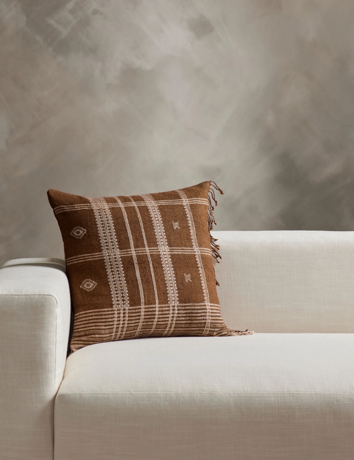 For a welcoming home, a handmade touch goes a long way. This throw pillow is hand loomed and woven with Desi wool creating textural geometric patterns. These pillows are crafted using traditional techniques in western India—slight variations showcase the artisanal process giving each decorative pillow its own unique look.