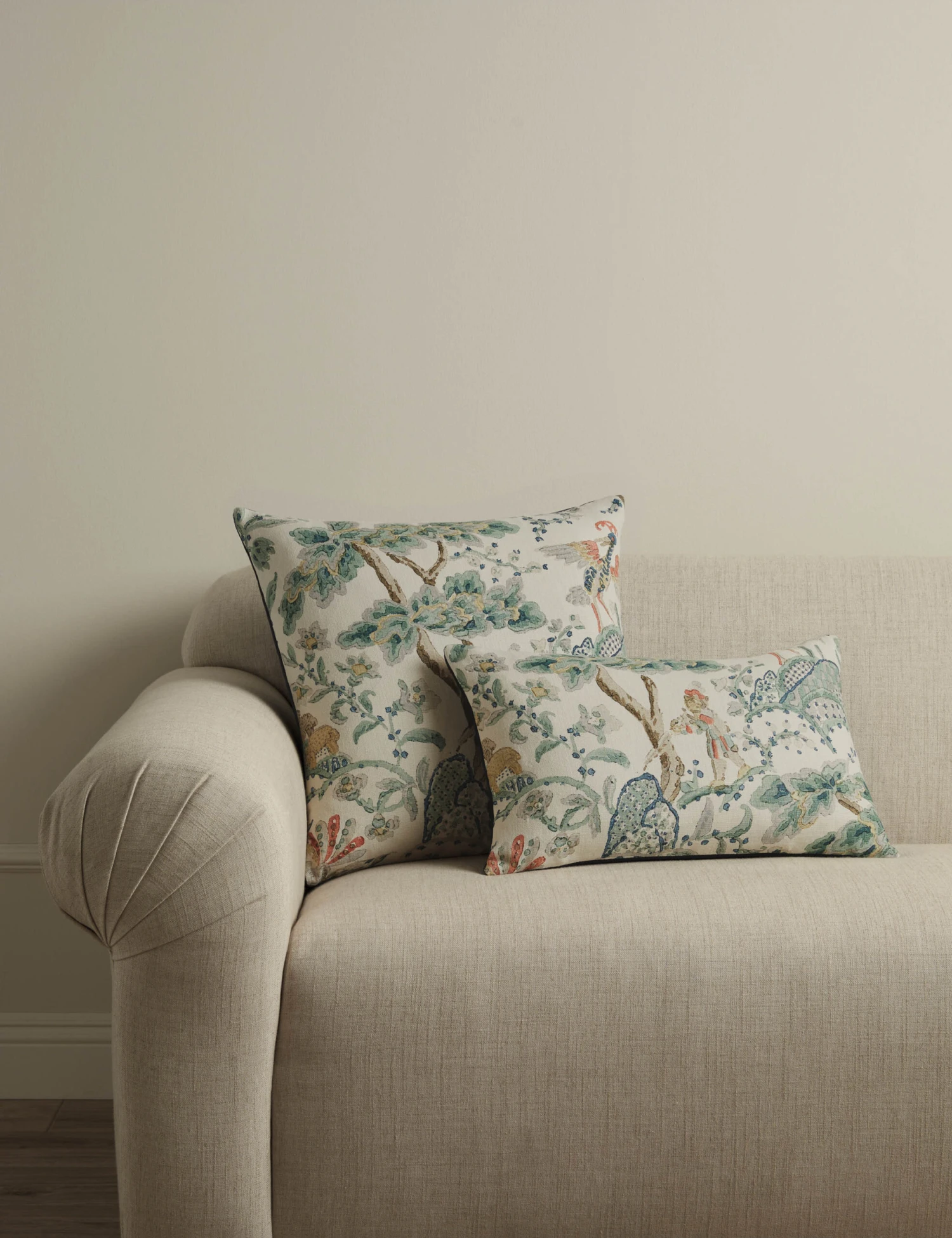 Decorative pillows are a great way to layer rich patterns into your design. This ornate pillow features a classic botanical scene set to elevate any curation with a traditional touch. The pillow’s linen fibers complement the timeless design with a natural elegance that styles great in everyday spaces.