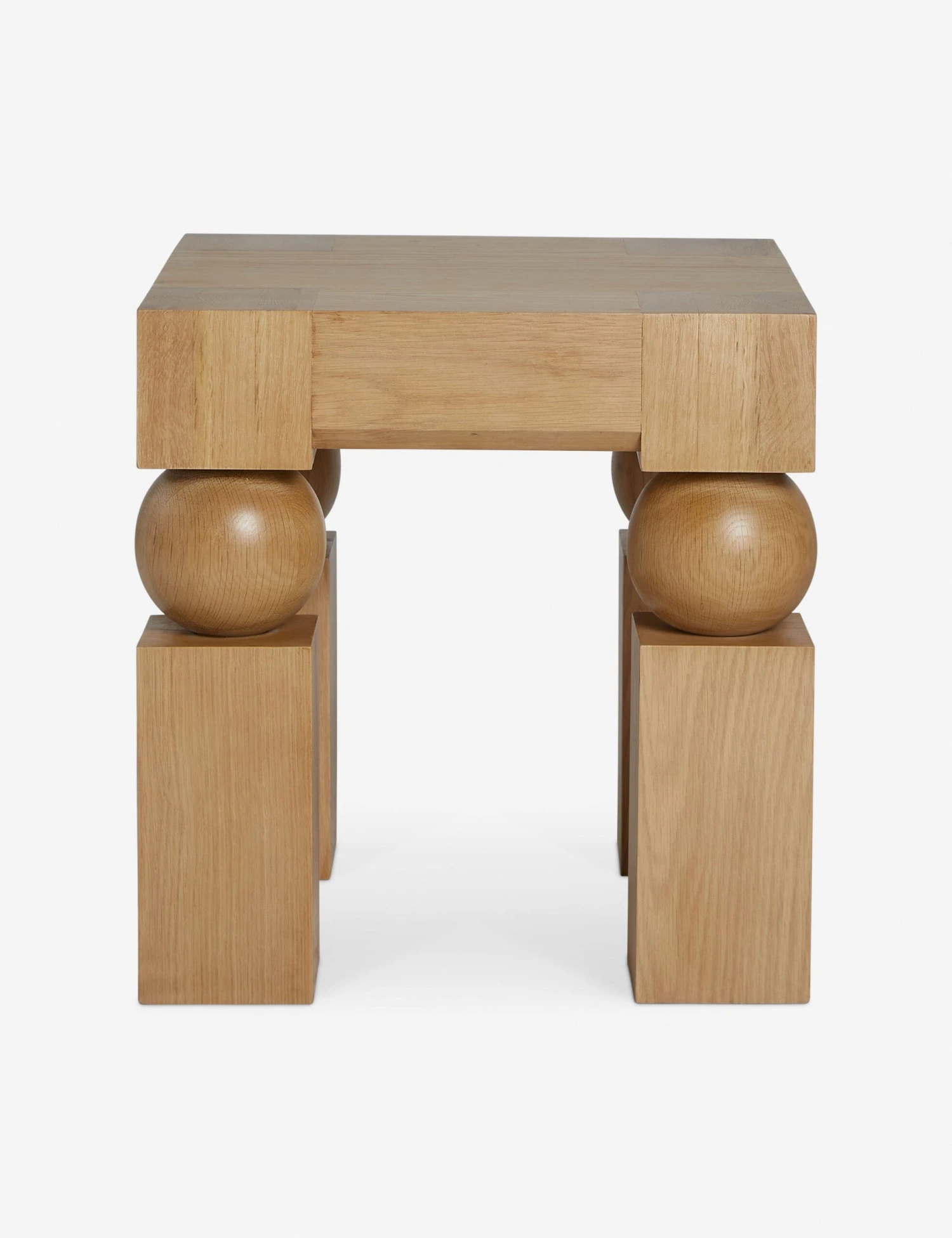 The Kent side table offers a sculptural edge to any living space. Its blend of geometric shapes cuts a sculptural silhouette in oak—fashioning the perfect end table for a modern yet grounded design.