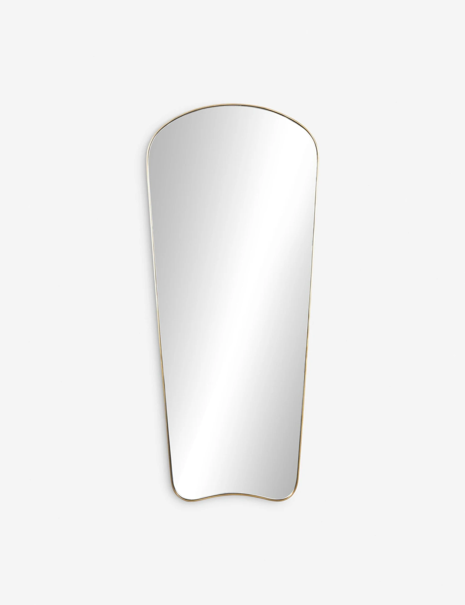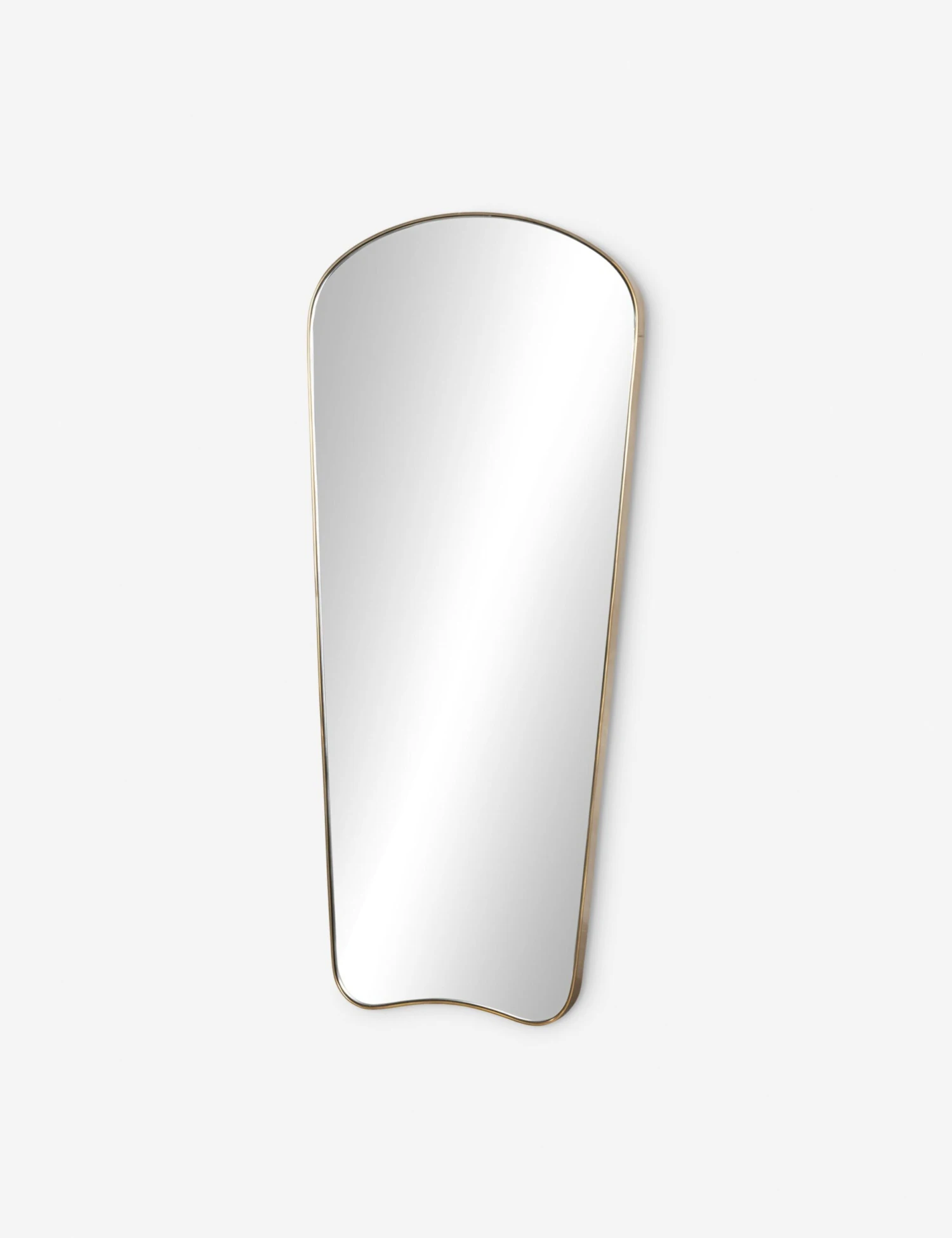 Bring a stylish edge to your curation with the Kitsa mirror. This full-length mirror offers a tall frame perfect for outfit checks, enhancing light and augmenting dimension in a small-space design. The slim frame and playful silhouette are a chic fit for modern decor.