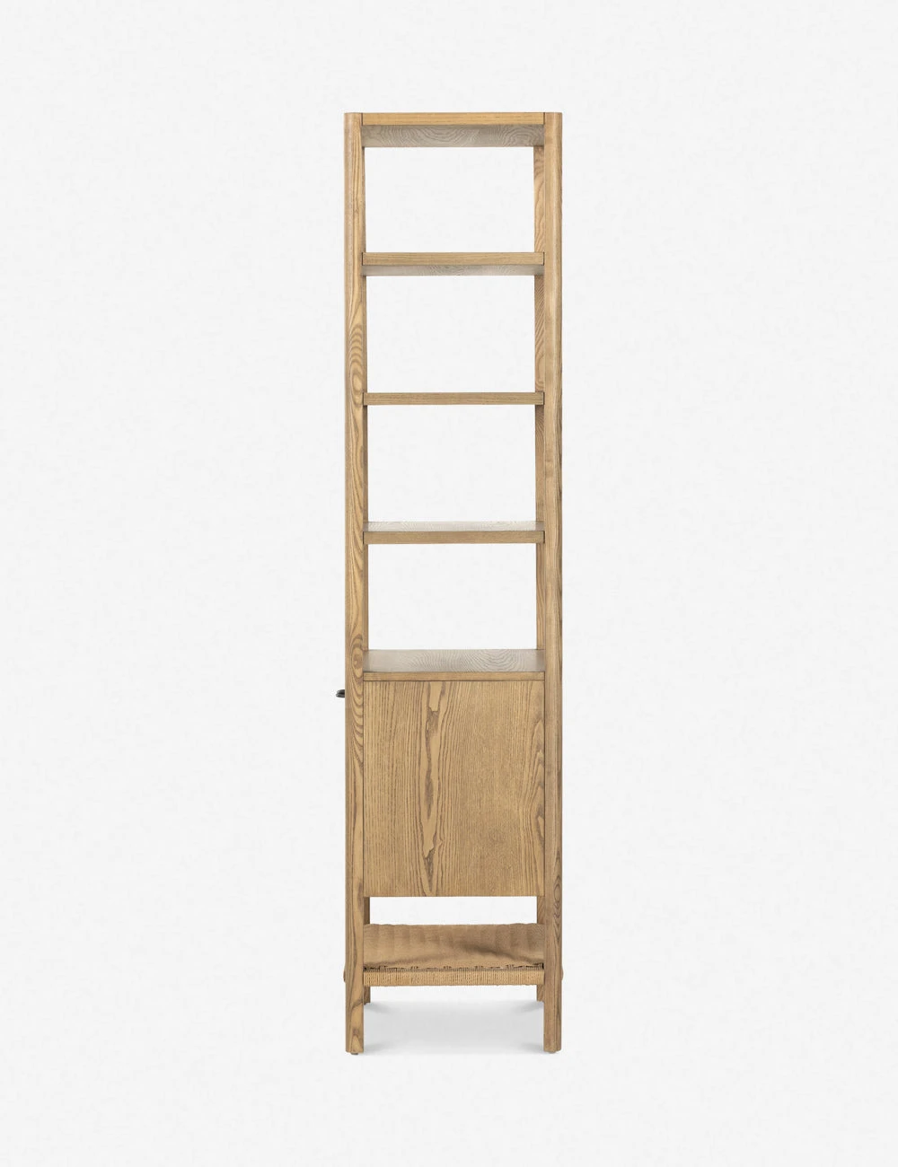 A clean-cut, ash wood design brings Danish-inspired warmth to this Laird bookcase. Iron arch pulls complete the look, while a woven cord shelf offers the perfect textural touch. Featuring ample shelving plus a lower cabinet, this bookcase is a versatile solution for storage and display from your home office to your lounge.