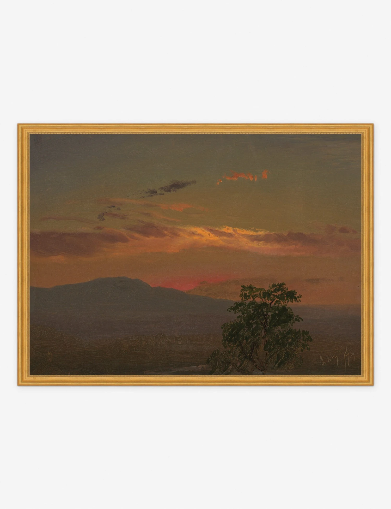Bring a quiet depth to your wall decor with this beautiful reproduction. The piece captures the warmth and drama of a sunset over the Hudson valley with a serene composition. We love the bold hues and dusky tones for a gallery art wall or moody curation.