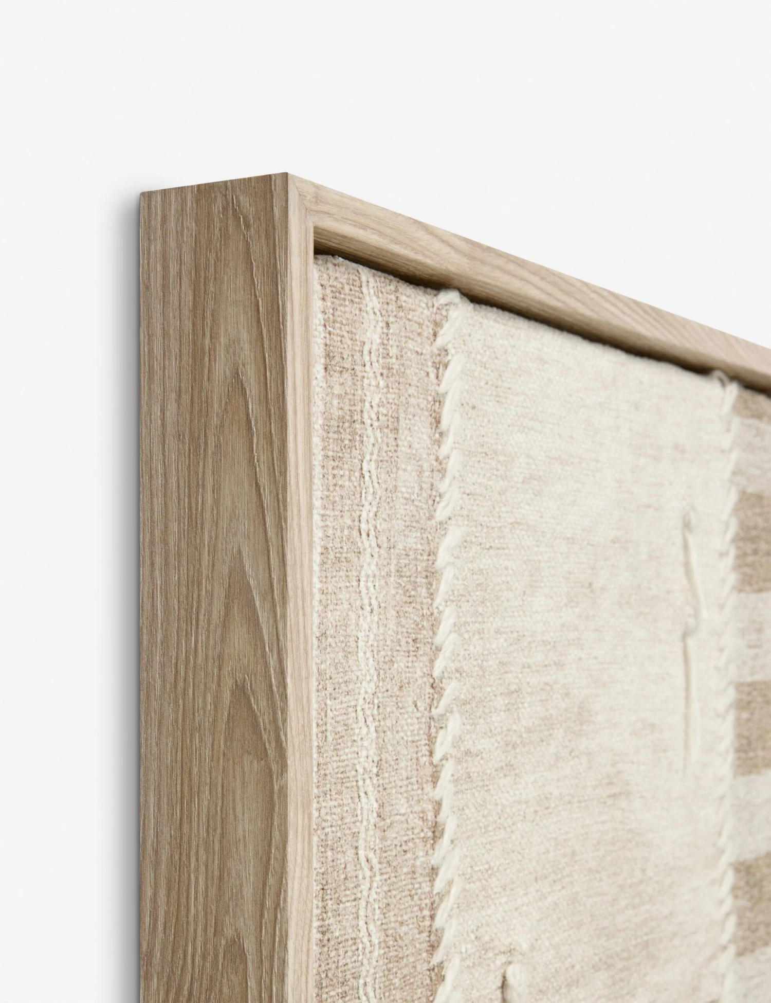 Style a touch of art that showcases its own construction with this small framed textile. This patchwork assemblage is stitched together, creating a pattern block design that finds unity through minimalist tones and a textural weave. The visible seams and pulled thread accents add to the sense of artistry and make for a rich addition to modern wall decor.
