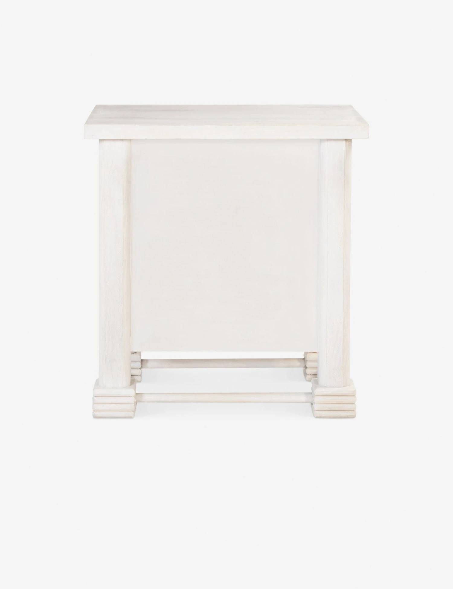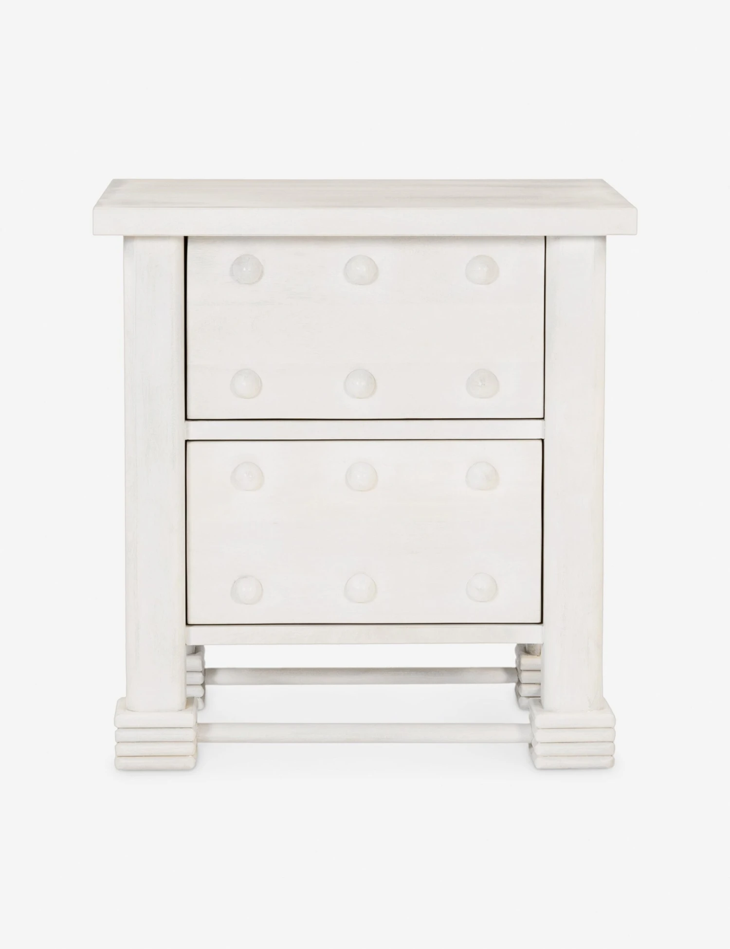 The Laval nightstand cuts a chunky silhouette with French styling and knob motifs. A whitewash finish completes the look, inspiring a rustic feel set for modern design. This large nighstand offers ample bedside storage with two deep drawers for all your essentials.