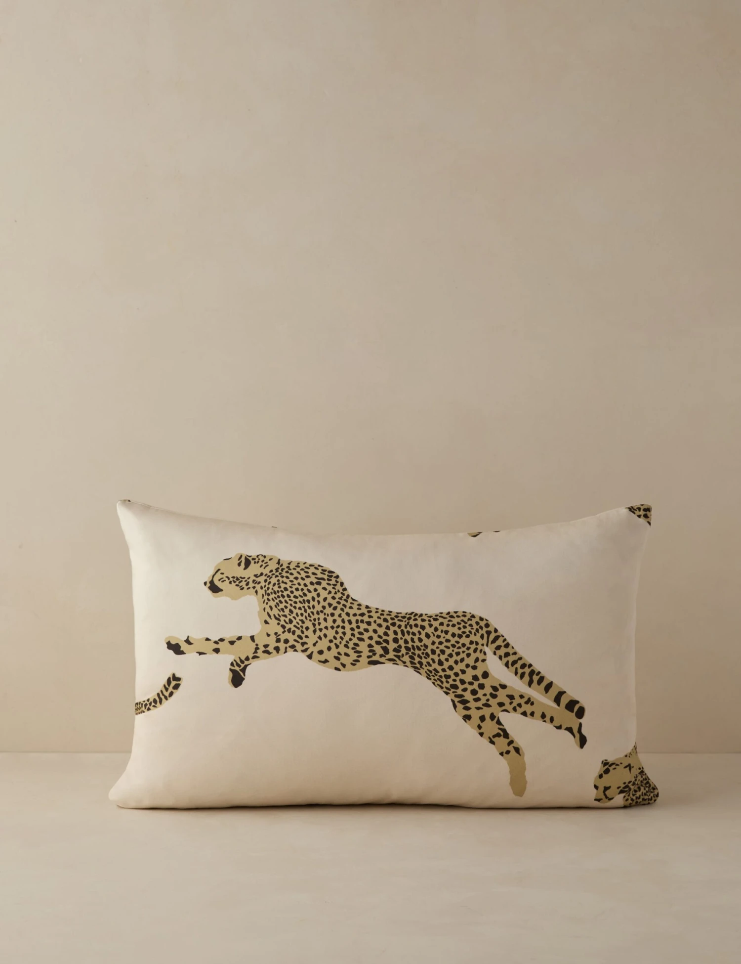 Nothing strikes visual interest in a curation like a graphic element. This leaping cheetah throw pillow brings a traveled air to your decor that will elevate and delight. The pillow’s natural cotton fibers give it an irresistibly soft touch.