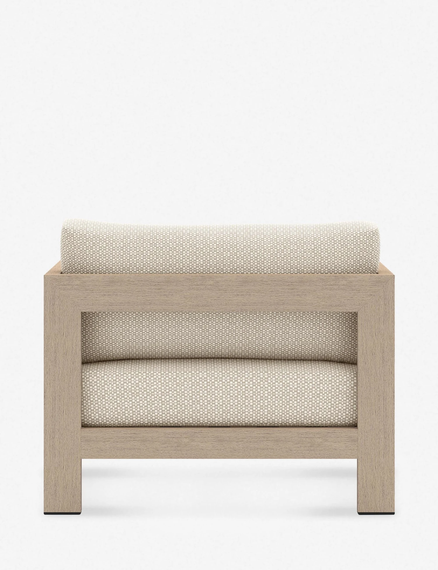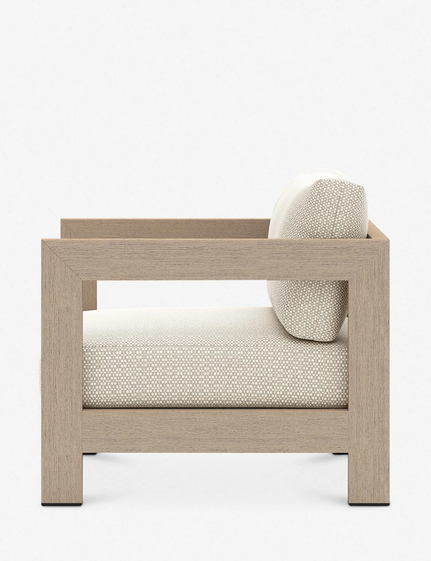 Clean, linear design evokes understated appeal in this low-slung accent chair. With plush cushions and soft, desert tones, this elemental chair offers the perfect grounding touch for a patio, sunroom, or poolside lounge.