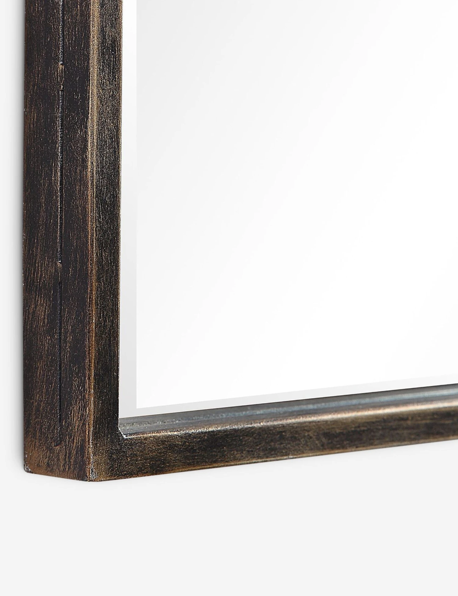 With its beautifully arched shape and an antiqued bronze finish, this decorative mirror looks like an exciting market find. The metal frame’s rich patina brilliantly reflects in the light, so we love the idea of placing this sculptural wall mirror above a mantel or console table.